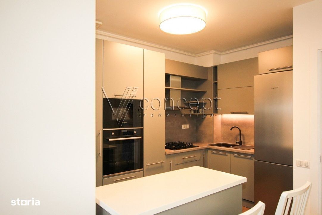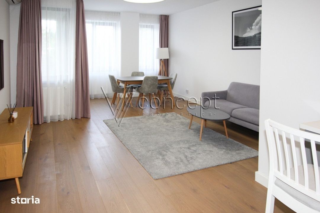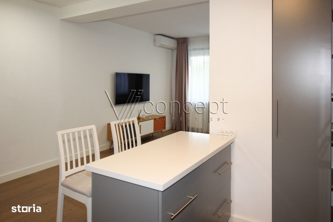 0% comision Chirias ViConcept Properties va propune spre inchiriere un apartament cu 2 camere, situat in complexul rezidential Residence 5, din zona de Nord a Capitalei. Apartamentul este situat la etajul 2 din 4 si este compus din hol, living cu bucatarie open space, dormitor cu dressing spatios, baie si terasa. Locuinta oferă un spațiu generos de 70 mp utili, are o terasa cu o suprafata de 12 mp si se inchiriaza mobilat si utilat complet. Prezinta multiple spatii de depozitare, totul fiind gandit practic, mobilierul si electrocasnicele sunt noi. Dotari: - 2 aparate de aer contionat, - centrala termica proprie, - masina de splat vase, - masina de spalat haine cu uscator, Apartamentul se afla intr-o stare impecabila, aflandu-se la prima inchiriere, cu loc de parcare subteran inclus. Blocul este dotat cu sistem de supraveghere, acces cu bariera, paza, parcare subterana. Zona este cunoscută pentru unitati de invatamant private, cum ar fi British School, Mark Twain, Școala Americană, Liceul Francez, Little London, Olga Gudynn, Avenor, și Discovery. Are accesul rapid catre Băneasa Shopping City, Ikea, Metro - toate situate la doar câteva minute de mers cu mașina. În apropierea ansamblului residential se afla: Padurea Baneasa, sala de sport World Class, Stejarii Country Club, Gradina Zoo, oferind opțiuni variate pentru petrecerea timpului liber. Daca sunteti in cautarea unei astfel de locuinte, nu ezitati sa ne contactati. ID Intern: P124143