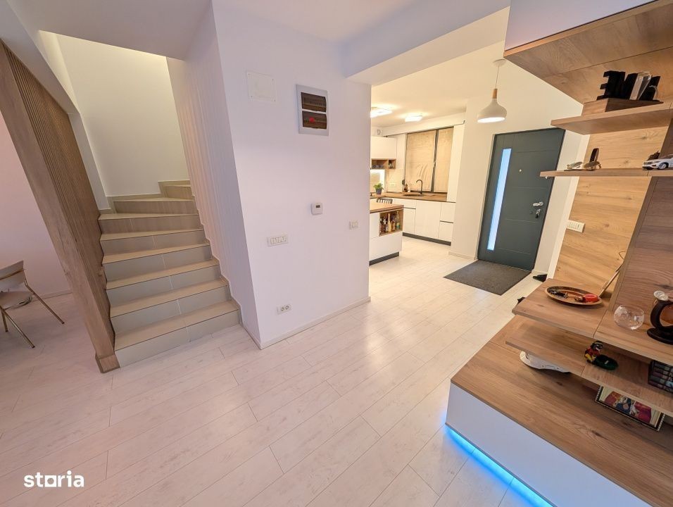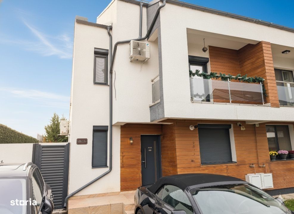 Va oferim spre achizitie fara comision o casa tip duplex superba, cu finisaje si dotari premium, complet mobilata si utilata la cel mai inalt nivel de calitate. Casa fac parte dintr-un complex rezidential de tip gated community localizat in Tunari pe strada Paris. Beneficiaza de piscina proprie ingropata. Asa cum v-am obisnuit: - toate ofertele Monga Imobiliare sunt fara comision din partea cumparatorului - pentru ca iubim transparenta, toate preturile afisate de Monga Imobiliare includ TVA (daca se aplica). Pretul afisat de noi este intotdeauna pretul final pe care il vei achita. Acceseaza Monga Imobiliare (Monga RO) pentru mai mai multe poze si pentru intreg portofoliul nostru de case si apartamente din Otopeni, Tunari, Balotesti, Corbeanca, Pipera si chiar nordul Bucurestiului. Punctele forte al acestei case sunt numeroase, incepand bineinteles cu piscina, suprafetele vitrate generoase, terasa spatioasa amenajarea premium incluzand finisajele si mobilierul de calitate. Complexul inchis de tip gated community ofera un plus de confort si siguranta. Despre spatiu: La parter, accesul se face intr-un hol ce comunica cu o baie, bucataria deschisa si zona de living-dining foarte spatioasa. De aici avem accesul catre terasa si curte, dar si scarile catre etaj. La etaj avem un dormitor matrimonial cu baie proprie, inca doua dormitoare si o baie. Unul din dormitoare este acum amenajat ca si dressing. La mansarda avem un open space generos ce permite recompartimentare (dupa caz) si o baie. In curte avem o terasa, psicina si spatiu liber. Alte detalii: - conectata la toate utilitatile - piscina (6mx3.2mx1.5m) cu pompa de caldura si camin tehnic. - terasa acoperita si partial inchisa - centrala Viessmann cu incalzire in pardoseala la parter si etaj/ calorifere la mansarda si termostat in fiecare camera. - aer conditionat x 3 - mobila si electrocasnice premium Comunitate inchisa din care face parte ofera un plus de siguranta si confort. In apropiere avem scoli si gradinite (publice si private), Lidl, Mega Image, transport in comun. Acces usor catre Otopeni, DN1, Pipera, Centura Capitalei. Va asteptam la vizionare pentru a descoperi toate aceste detalii si multe altele ale acestei proprietati cu adevarat deosebite. Apeleaza cu incredere la Monga Imobiliare. Suntem alaturi de tine pana la finalizarea tranzactiei si te ajutam sa treci cu incredere si in cunostinta de cauza prin toti pasii necesari. Te putem ajuta in pregatirea documentelor, selectia notarului, obtinerea finantarii, si altele. Te asteptam sa ne contactezi.