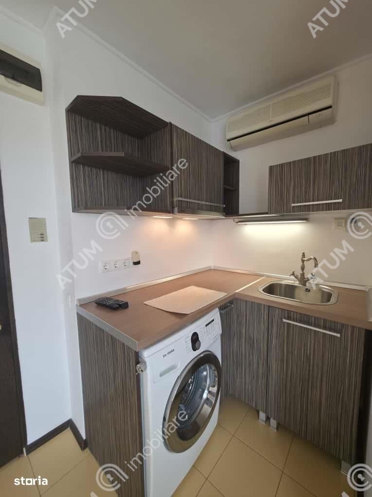 De vanzare garsoniera, orientata catre SUD, situata la etajul 11, intr-un imobil cu 11 etaje, izolat la exterior si dotat cu acoperis terasat la care accesul este propriu garsonierei in zona Vasile Aaron din Sibiu. Locuinta are suprafata utila de18 mp, compusa din camera, bucatarie, baie, hol. Ca dotari, garsoniera beneficiaza de: usa de acces din metal, usa din PVC la interior, gresie, faianta, parchet laminat, centrala proprie cu incalzire pardoseala, cabina dus, tamplarie PVC de 5 camere si geam termopan cu 2 foi de sticla. Garsoniera se vinde partial mobilata si utilata cu masina de spalat rufe, aer conditionat, TV. Locuinta se poate achizitiona si prin accesarea unui credit bancar, pretul de achizitie este de 60.000 euro negociabil. ID intern: 3021.