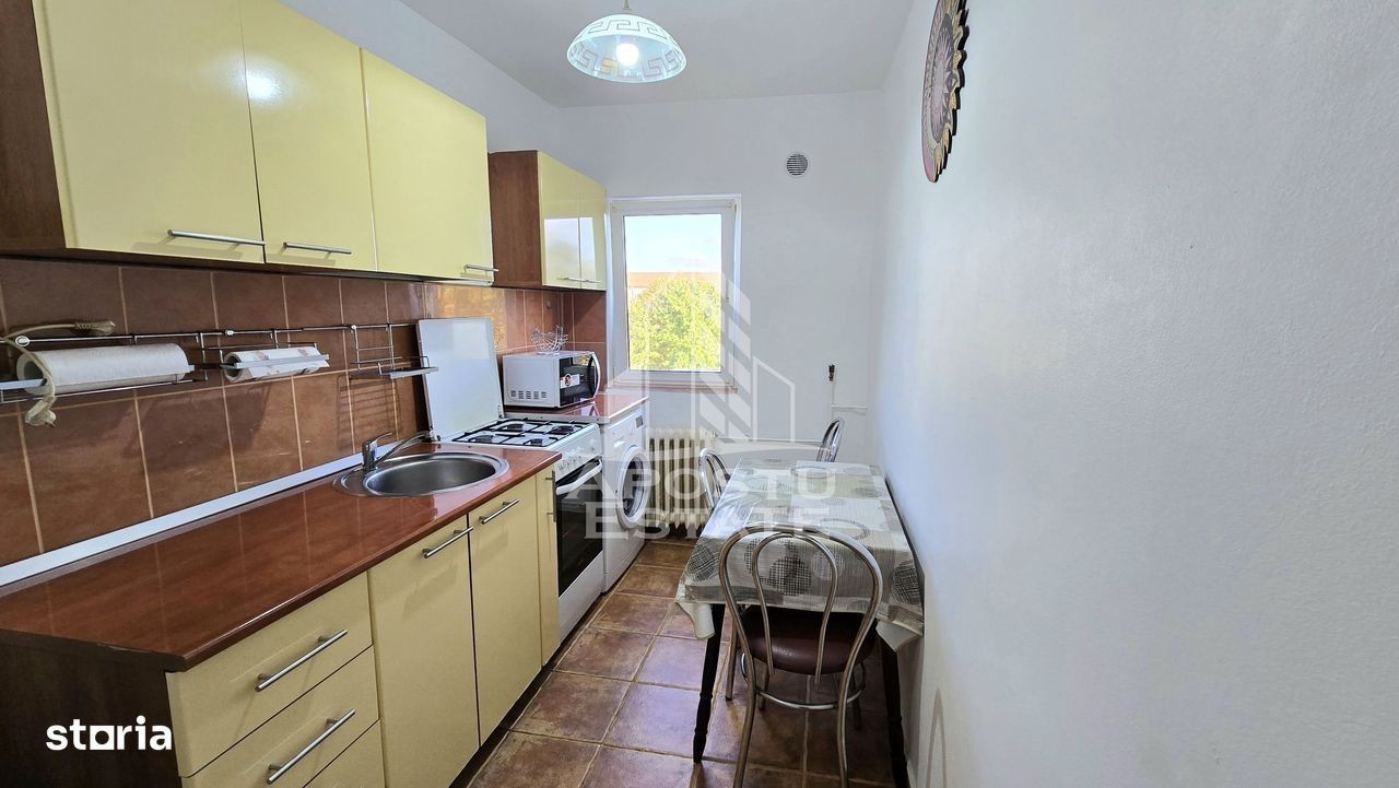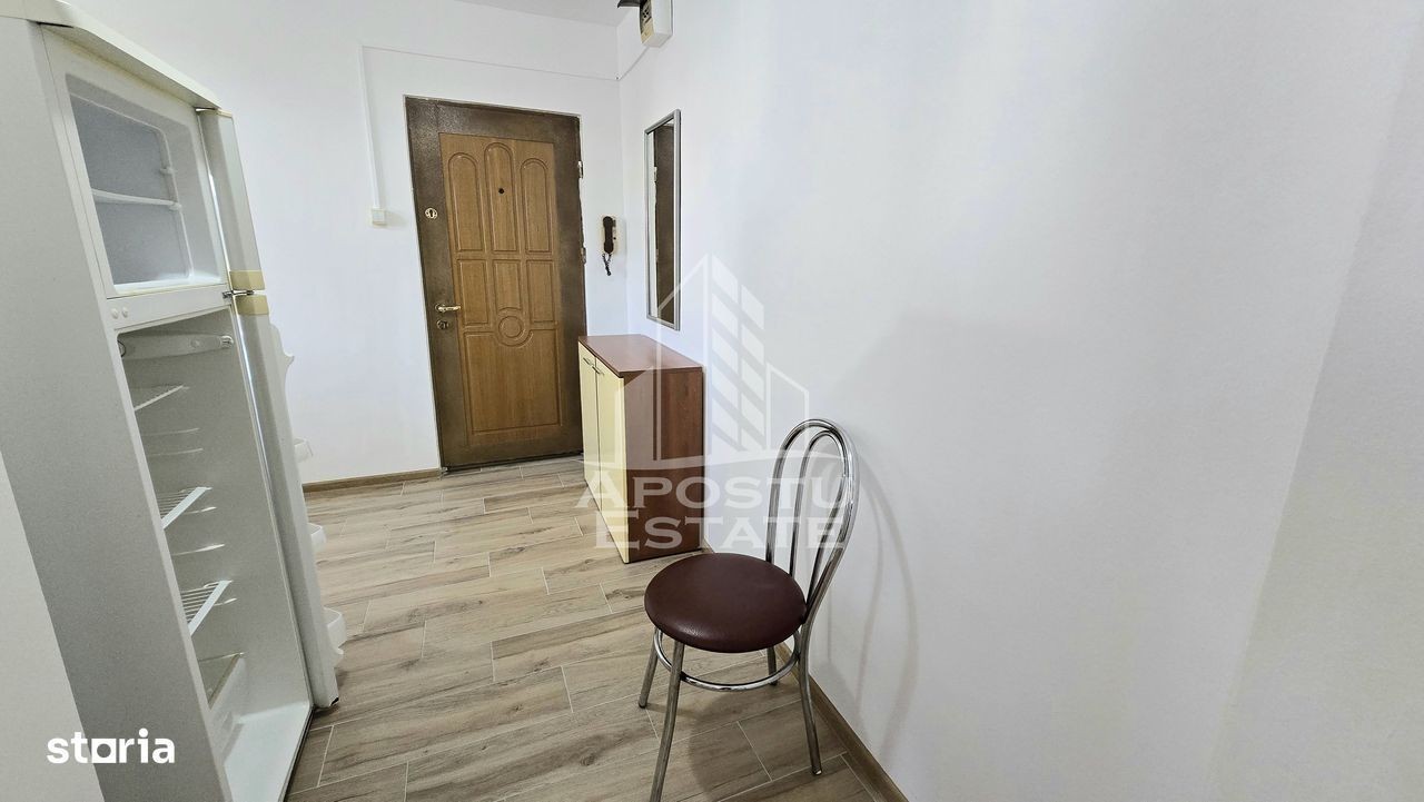 Apostu Estate ofera spre vanzare un apartament cu o camera, situat la etaj intermediar, etajul 4 din 5 al unui bloc reabilitat termic, intr-o zona linistita si bine conectata la principalele puncte de interes din oras. Locatia este ideala pentru studenti, tineri profesionisti sau investitori, fiind la doar cateva minute de statia de autobuz, scoli, parcuri si supermarketuri, iar Iulius Mall se afla la aproximativ 15 minute distanta. Apartament cu o camera, bine compartimentat, avand o suprafata utila generoasa de 32 mp. Compartimentare: hol de acces bucatarie spatioasa cu loc de luat masa baie cu cada si geam pentru aerisire camera principala luminoasa Confortul termic se realizeaza prin intermediul termoficarii. Dotari si beneficii: bloc anvelopat exterior zona linistita acces facil catre mijloacele de transport in comun disponibil imediat Vecinatati: statii de autobuz parc si locuri de joaca scoala, gradinita supermarketuri Iulius Mall la 15 minute Oferim consultanta financiara gratuita prin colaboratorii nostri, pentru alegerea celui mai avantajos credit. Va asteptam cu drag la o vizionare chiar astazi! Disponibil imediat!