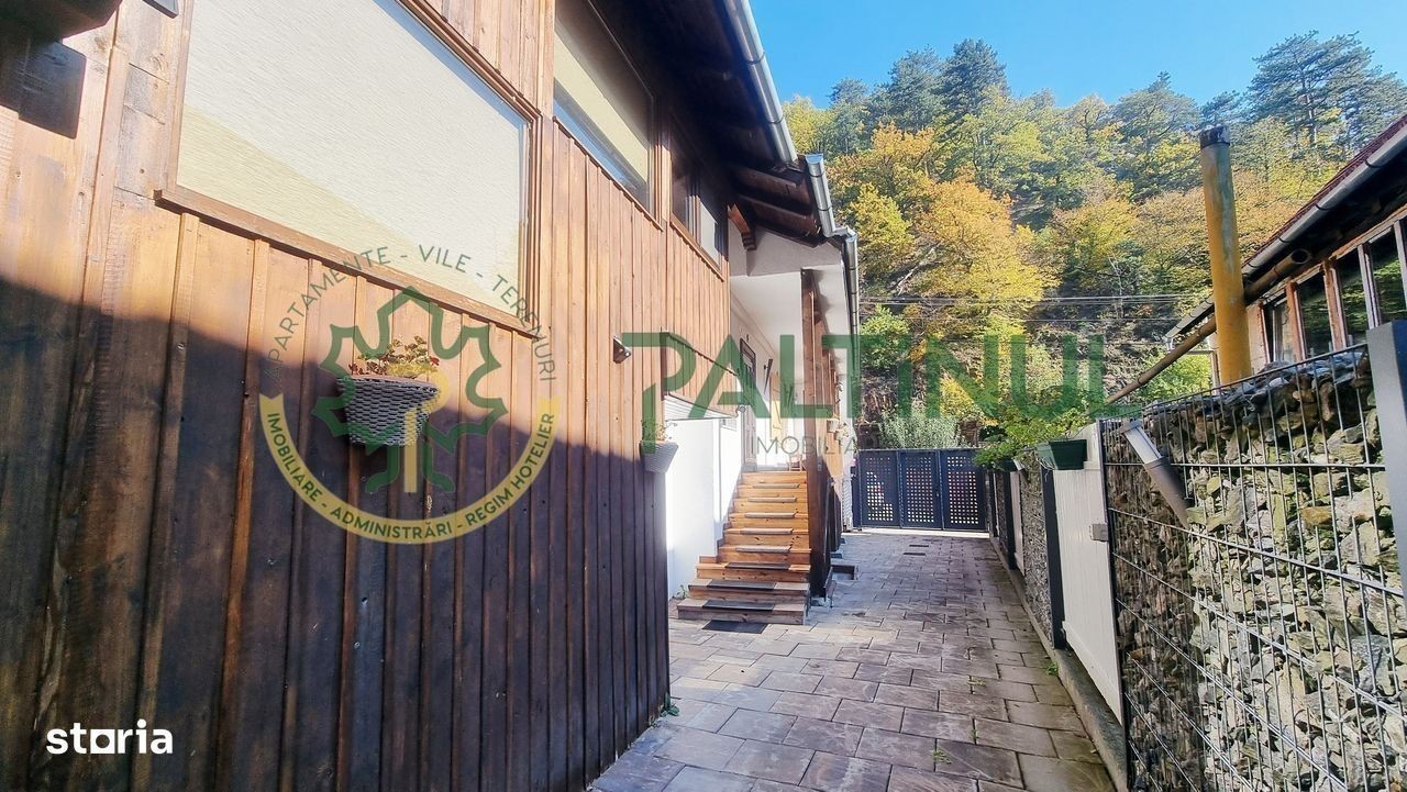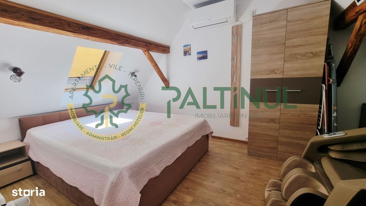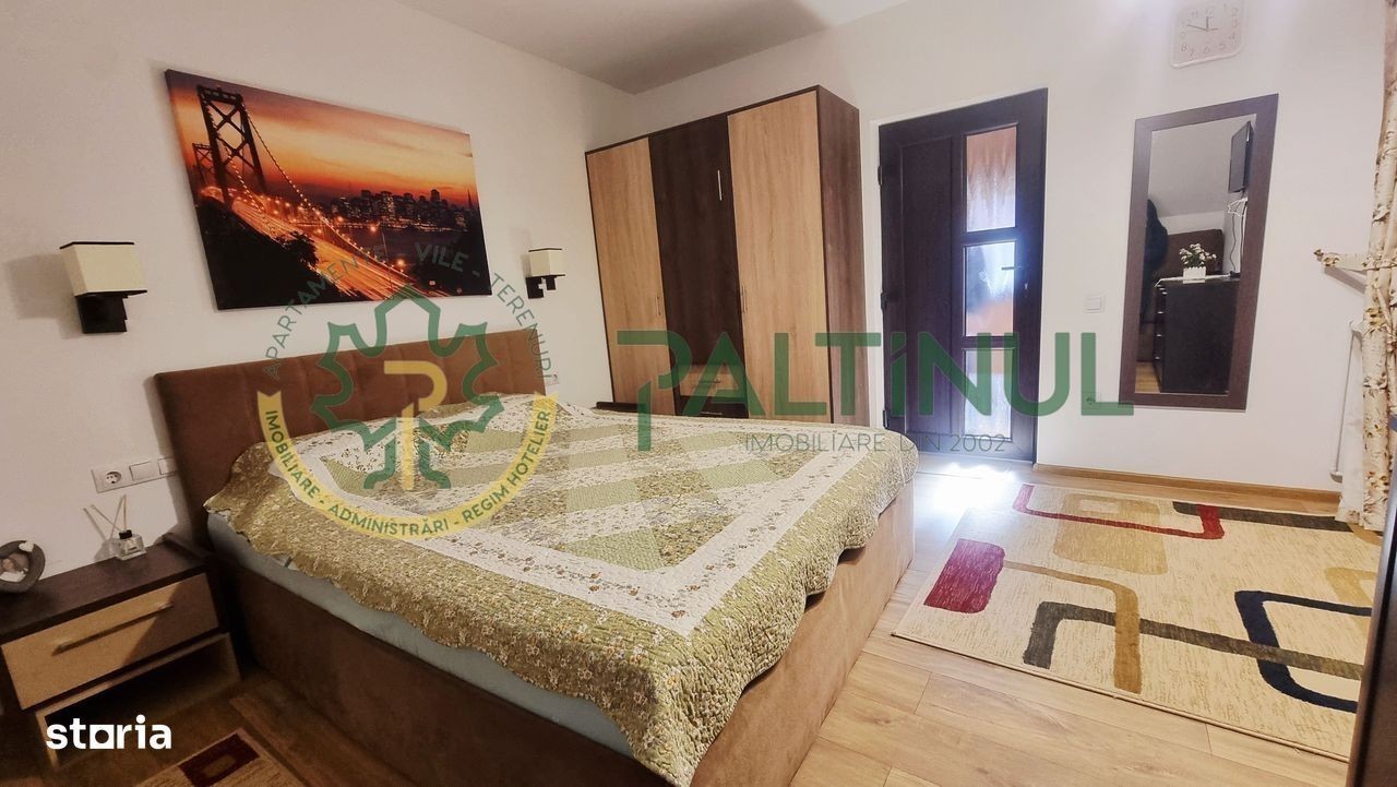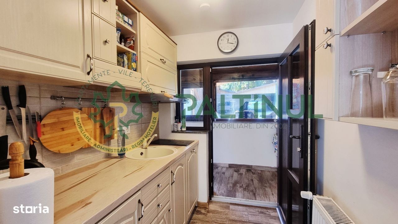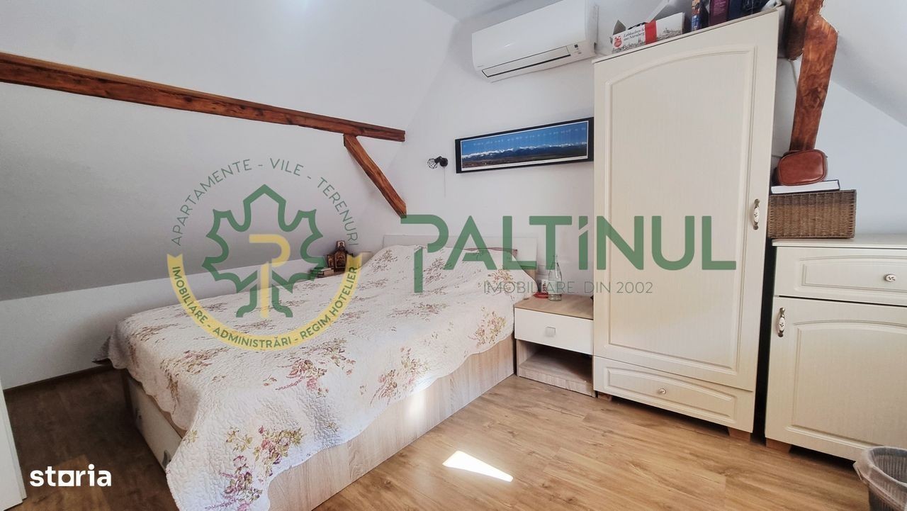 Casă modernă cu două apartamente, complet utilată, Cisnădioara - Sibiu Paltinul Imobiliare propune spre vânzare o casă multifuncțională situată în Cisnădioara, într-o zonă liniștită și ușor accesibilă, ideală pentru locuire permanentă, casă de vacanță sau investiție în regim hotelier. Proprietatea este construită pe un teren de 306 mp și are o structură pe Subsol + Parter + Mansardă (S+P+M), fiind compartimentată ingenios în două apartamente independente, fiecare cu acces propriu și dotări complete. Detalii generale: Suprafață teren: 306 mp Regim de înălțime: S+P+M Curte amenajată, cu terasă acoperită, filigorie, atelier de scule și poartă cu deschidere automată Cameră tehnică separată, dotată cu centrală termică nouă, boiler de 200 l pentru apă caldă și panouri fotovoltaice de 5 kW - eficiență energetică excelentă Compartimentare detaliată: Apartamentul 1 (principal): Hol la intrare Baie cu geam de aerisire Living spațios cu bucătărie open-space Mansardă: două dormitoare decomandate și baie Apartamentul 2 (secundar): Parter: living cu bucătărie open-space, baie Etaj: dormitor cu baie proprie Dotări și finisaje: Se vinde complet mobilată și utilată, conform fotografiilor Aer condiționat în toate dormitoarele Mașină de spălat rufe și mașină de spălat vase Pivniță cu geam de aerisire, spațiu de uscare și depozitare Curte îngrijită, cu zonă verde și spații de relaxare Poartă automatizată cu telecomandă Avantaje cheie: Proprietate versatilă - potrivită pentru două familii, locuință + spațiu de închiriat, sau casă de vacanță Eficiență energetică prin panouri fotovoltaice și centrală modernă Construcție solidă, compartimentare logică și finisaje de calitate Zonă deosebit de căutată, la doar câteva minute de Sibiu și Cisnădie Această proprietate oferă echilibrul perfect între confort, funcționalitate și intimitate, într-un cadru natural liniștit, specific zonei Cisnădioara. Este o alegere excelentă pentru cei care caută un imobil complet echipat, gata de locuit, fără investiții suplimentare.