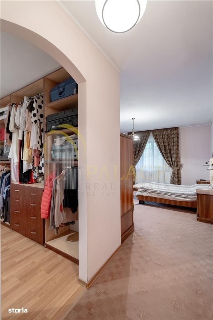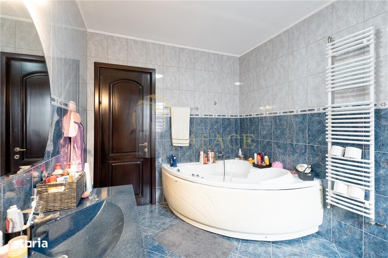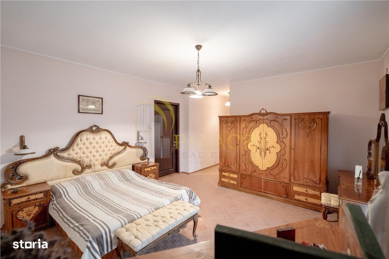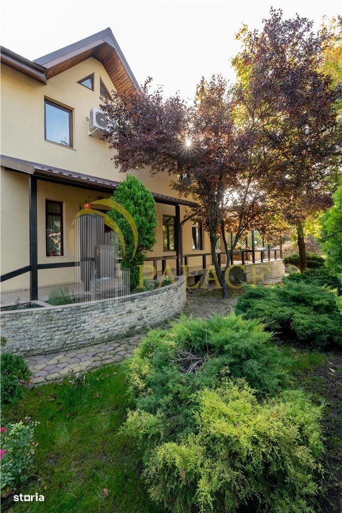 De vanzare - Conac de lux in Zona Piata Chirila - Tatarasi, Iasi Va prezentam un conac boieresc + un apartament in aceeasi cladire, situate intr-o zona linistita si exclusivista din Iasi, la doar cateva minute de centrul orasului. Cu o suprafata utila de 400 m² si o amprenta la sol de 180 m², aceasta proprietate impresionanta este amplasata pe un teren generos de 1350 m², avand o deschidere la strada de 50 metri. Curtea este amenajata cu mult rafinament, cu plante ornamentale, arbusti, o cascadă din piatra de rau si gazon intretinut printr-un sistem de irigare. Gardul solid din beton asigura intimitate si securitate. Compartimentare: Demisol: camera tehnica, spalatorie, baie, sauna pe lemne, hammam din marmura, sala de fitness activitati. Parter: hol spatioas cu scara interioara, living generos, dining, bucatarie, baie si un apartament separat de 2 camere, baie, bucatarie open-space, plus o terasa de 49 m². Etaj: 2 dormitoare de cate 27 m² fiecare cu baie proprie; dormitor matrimonial de 30 m² cu baie mare, dressing si balcon acoperit de 10 m². Pod: spatiu de depozitare cu posibilitate de mansardare. Detalii constructie: Realizata din caramida plina, cu pereti de 80 cm grosime si izolatie interioara, casa beneficiaza de o inaltime generoasa a camerelor de 3.20 m, conferind o senzatie de spatiere. Facilitati suplimentare: Sauna pe lemne Hammam din marmura Spalatorie Sala de fitness Beci cu adancime de 4 m si suprafata de 30 m² Garaj pentru 2 masini cu usi automatizate Voliere pentru animale sau magazie Piscina, gratar, gradina cu pomi fructiferi si ornamentali Finisaje si imbunatatiri: Tamplarie din lemn stratificat de stejar Usi interioare si de la intrare din lemn masiv de stejar Pervazuri din granit la interior si marmura la exterior Mobilier din lemn masiv de calitate superioara Semineu din marmura, functional pe lemne Proprietatea se vinde complet mobilata si utilata, pregatita pentru a deveni o locuinta de vis. Localizare: Zona este foarte linistita, avand acces facil la mijloacele de transport in comun, piete, magazine si institutii importante: 5 minute de Palas si Palatul Culturii 7 minute de Spitalul Sf. Spiridon si Aeroportul International Iasi 10 minute de Gara Iasi si Universitatea Alexandru Ioan Cuza Aceasta este o oportunitate unica de a achizitiona un conac boieresc intr-una dintre cele mai bune zone din Iasi!