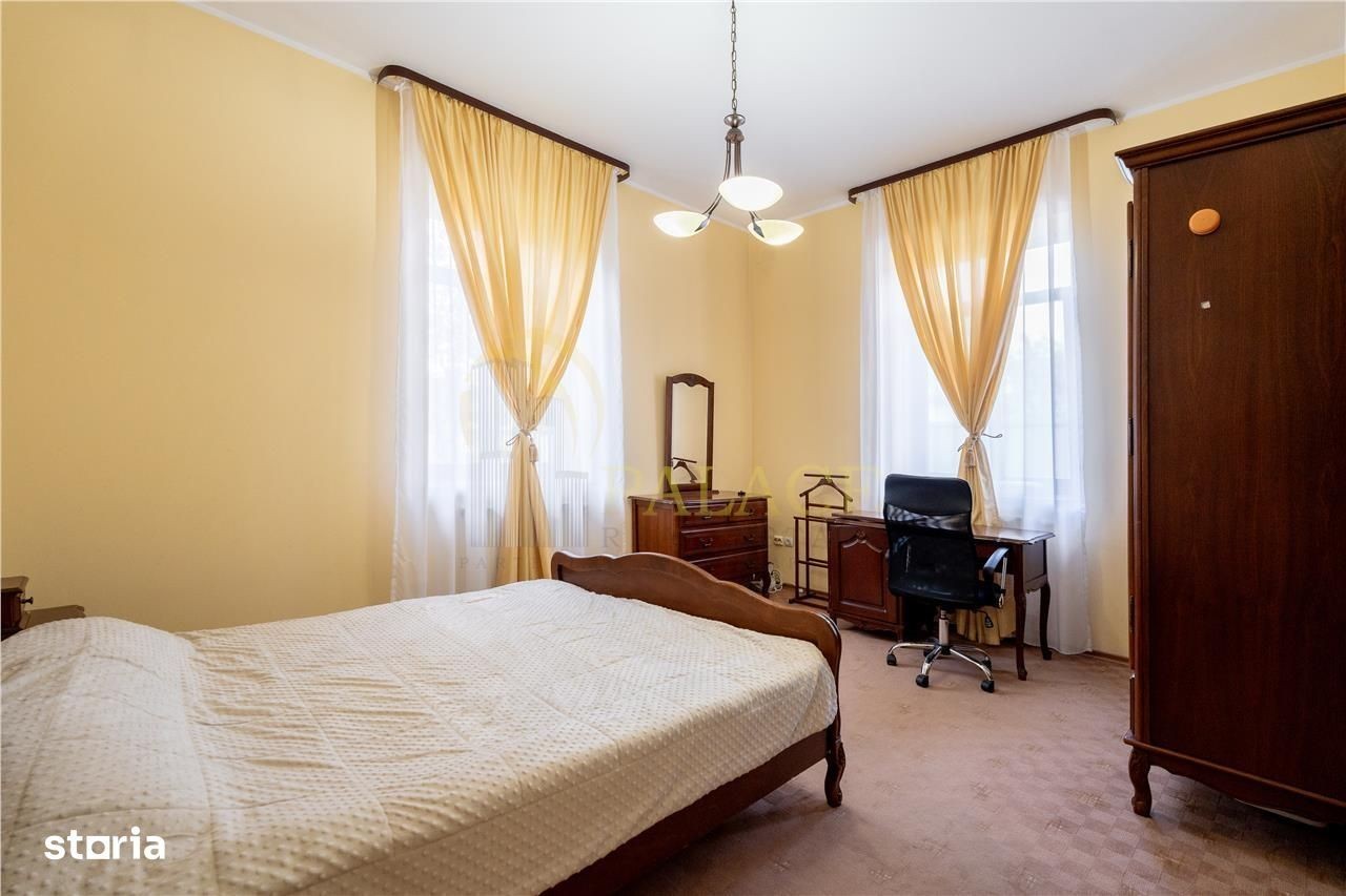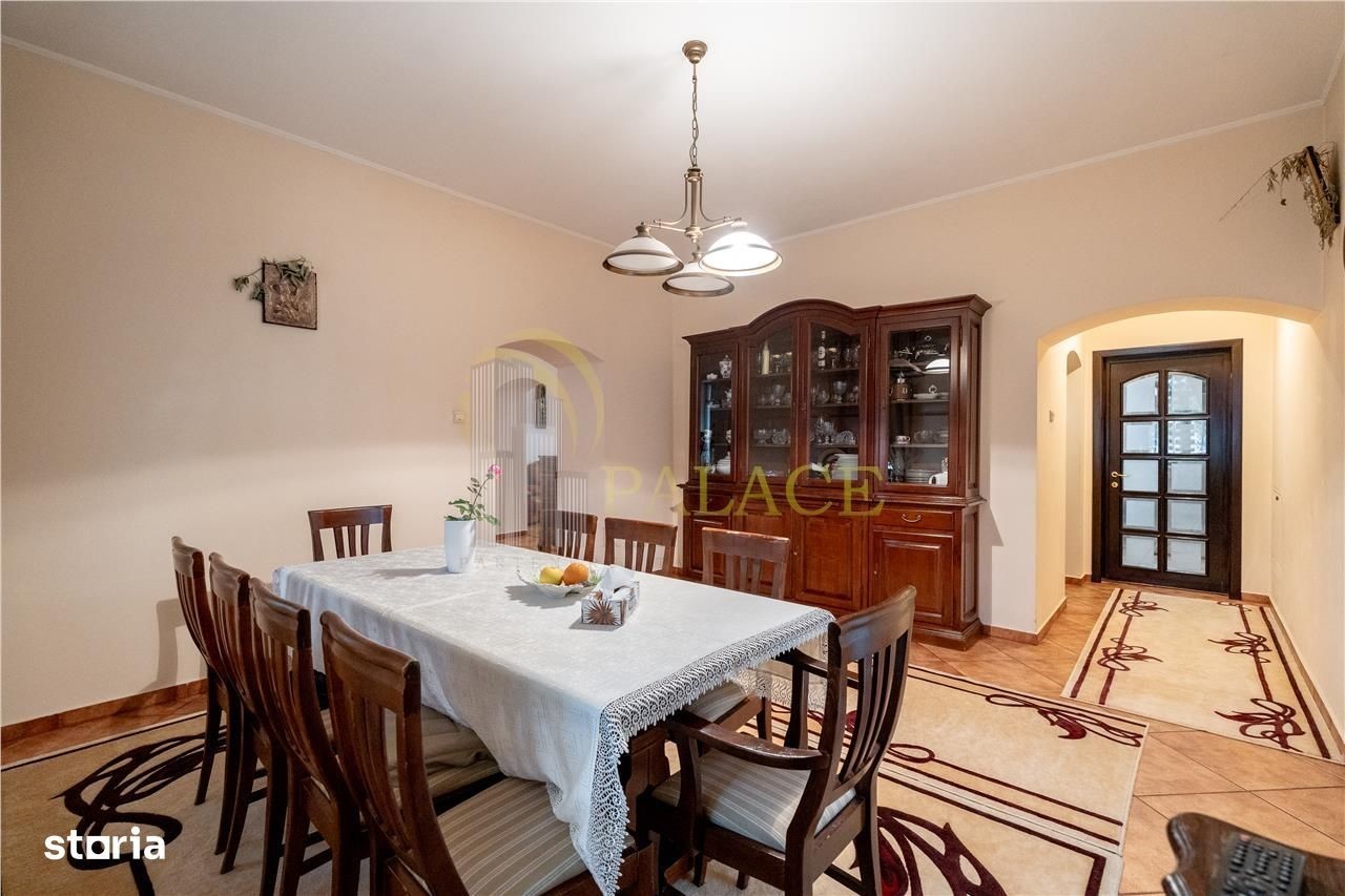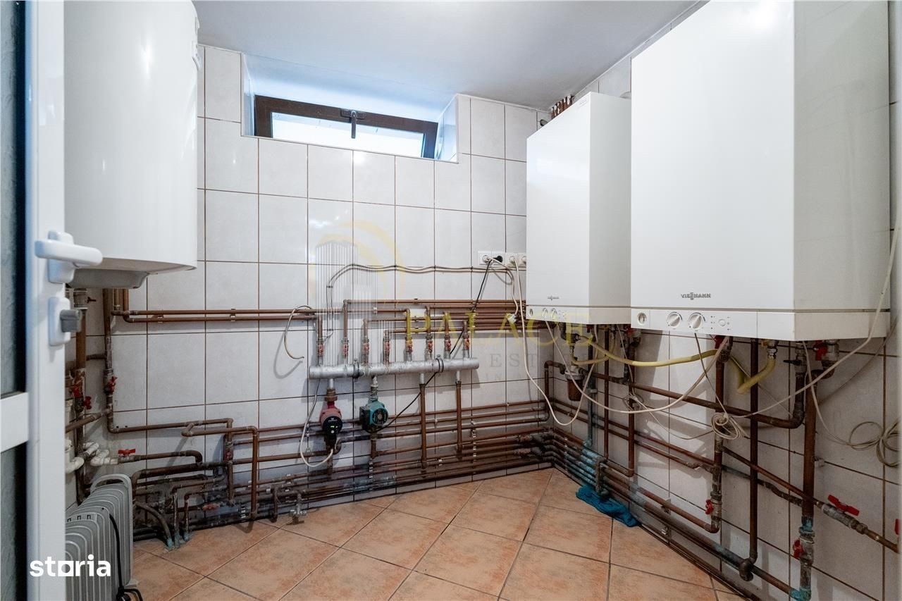 De vanzare - Conac de lux in Zona Piata Chirila - Tatarasi, Iasi Va prezentam un conac boieresc + un apartament in aceeasi cladire, situate intr-o zona linistita si exclusivista din Iasi, la doar cateva minute de centrul orasului. Cu o suprafata utila de 400 m² si o amprenta la sol de 180 m², aceasta proprietate impresionanta este amplasata pe un teren generos de 1350 m², avand o deschidere la strada de 50 metri. Curtea este amenajata cu mult rafinament, cu plante ornamentale, arbusti, o cascadă din piatra de rau si gazon intretinut printr-un sistem de irigare. Gardul solid din beton asigura intimitate si securitate. Compartimentare: Demisol: camera tehnica, spalatorie, baie, sauna pe lemne, hammam din marmura, sala de fitness activitati. Parter: hol spatioas cu scara interioara, living generos, dining, bucatarie, baie si un apartament separat de 2 camere, baie, bucatarie open-space, plus o terasa de 49 m². Etaj: 2 dormitoare de cate 27 m² fiecare cu baie proprie; dormitor matrimonial de 30 m² cu baie mare, dressing si balcon acoperit de 10 m². Pod: spatiu de depozitare cu posibilitate de mansardare. Detalii constructie: Realizata din caramida plina, cu pereti de 80 cm grosime si izolatie interioara, casa beneficiaza de o inaltime generoasa a camerelor de 3.20 m, conferind o senzatie de spatiere. Facilitati suplimentare: Sauna pe lemne Hammam din marmura Spalatorie Sala de fitness Beci cu adancime de 4 m si suprafata de 30 m² Garaj pentru 2 masini cu usi automatizate Voliere pentru animale sau magazie Piscina, gratar, gradina cu pomi fructiferi si ornamentali Finisaje si imbunatatiri: Tamplarie din lemn stratificat de stejar Usi interioare si de la intrare din lemn masiv de stejar Pervazuri din granit la interior si marmura la exterior Mobilier din lemn masiv de calitate superioara Semineu din marmura, functional pe lemne Proprietatea se vinde complet mobilata si utilata, pregatita pentru a deveni o locuinta de vis. Localizare: Zona este foarte linistita, avand acces facil la mijloacele de transport in comun, piete, magazine si institutii importante: 5 minute de Palas si Palatul Culturii 7 minute de Spitalul Sf. Spiridon si Aeroportul International Iasi 10 minute de Gara Iasi si Universitatea Alexandru Ioan Cuza Aceasta este o oportunitate unica de a achizitiona un conac boieresc intr-una dintre cele mai bune zone din Iasi!