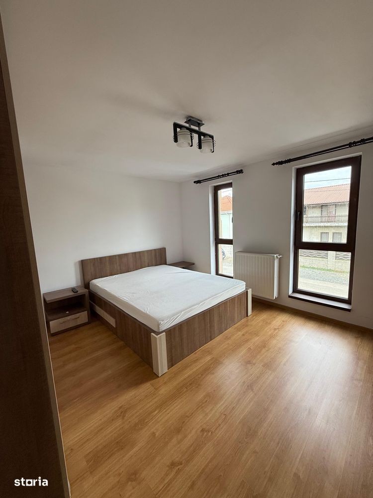 Va propunem spre inchirere Descoperă liniștea naturii la doar câțiva pași de oraș! Casa este amplasată într-una dintre cele mai frumoase zone din Dumbrăvița - lângă pădure și aproape de lac - oferind un cadru perfect pentru relaxare și confort. Imobilul face parte dintr-un ansamblu de case înșiruite, însă se bucură de un avantaj aparte: fiind ultima din șir, dispune de curte proprie în formă de L, cu terasă acoperită, grătar, spațiu de depozitare și loc de parcare acoperit în fața casei. Compartimentare: Parter: hol de acces, bucătărie complet utilată, living luminos și baie de serviciu. Etaj: două dormitoare spațioase și o baie principală. Pod generos, ideal pentru depozitare suplimentară. Casa este complet mobilată și utilată, pregătită pentru mutare imediată. Interiorul este cald, primitor, iar curtea oferă intimitate și un colț de natură la doar câteva minute de centrul Timișoarei. Ideală pentru o familie tânără sau un cuplu care își dorește confort, liniște și acces rapid către oraș.