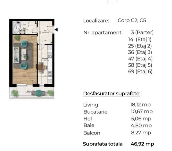 Garsoniera într-un complex nou - 46.92 mp, 55.000 € Situat la doar 5 minute de Pasarela Berceni, acestA GARSONIERA se află într-un complex modern, ideal pentru o locuință confortabilă și aproape de transportul în comun. Suprafața totală este de 46.92mp, iar termenul de finalizare este decembrie 2025. Preț: 55.000 € Pentru mai multe detalii și programări, sunați la: Numele meu este.