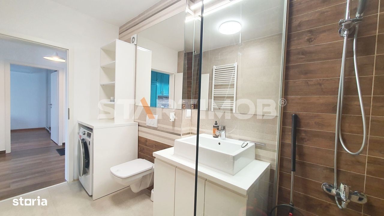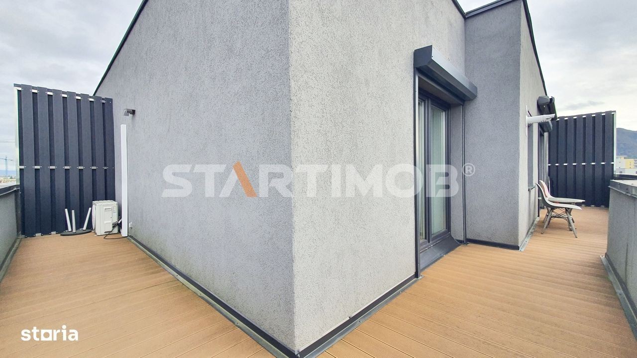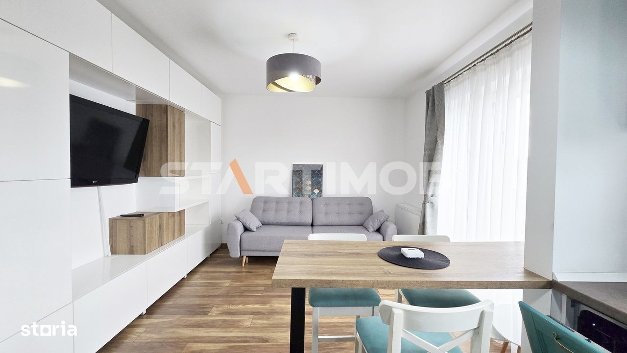 STARTIMOB va propune spre inchiriere un apartament studio situat in Brasov, str. Lebedei, cartier Avantgarden -Bartolomeu. Apartamentul este situat la etajul 6/6, pozitionare sud-vestica cu vedere panoramica asupra orasului, este amenajat modern, cu finisaje, mobilier si electrocasnice de calitate si are in componenta un living open space cu bucataria cu iesire pe terasa, hol, dormitor si baie. Proprietatea dispune de utilitati separate, spatii vitrate mari ce asigura multa lumina naturala, incalzire cu centrala termica proprie marca Vaillant, tamplarie PVC cu geam termopan, bucatarie dotata si echipata complet cu plita pe gaz, cuptor electric si hota electrica marca Franke, combina frigorifica si masina de spalat vase marca Electrolux, aparat cafea DeLonghi, fierbator apa Hausberg, etc ), baie complet mobilata si utilata, inclusiv cu masina de spalat automata cu uscator inclus marca LG, canapea in living, pat dublu cu saltea, noptiere si dulap tip dressing in dormitor, TV LCD in living si dormitor, sistem de aer conditionat Gree Inverter, etc. Totodata apartamentul dispune de parcare supraterana inclusa in pretul chiriei. Zona in care este amplasat apartamentul ofera un mediu curat și sigur, având tot confortul pe care îl oferă orice oraș european care beneficiaza in prezent de toate facilitatile urbane: mijloace de transport in comun, supermarket-uri (Carrefour Express, Lidl, Penny), Pizza Hut, Pepco, centrul comercial La strada, restaurante, cafenele, farmacii, centru de fitness, gradinita, afterschool, scoala de limbi straine, etc. Proximitatea fata de aceste pucte de interes ofera viitorului locatar conditii optime pentru inchirierea unui apartament in aceasta zona. Performanta energetica: -Clasa Energetica/ B -Consumul anual scpecific de energie (kWh/m2an) / 154,76 -Indice de emisii echivalent CO2/ 32,76 -Consum anual specific de energie din surse regenerabile/ 0 Pret inchiriere: 550 Euro/luna Apartamentul este liberl spre inchiriere, detinem cheile proprietatii iar vizionarile se organizeaza pe baza de programare telefonica. Suprafata si compartimentarea apartamentului il recomanda pentru o persoana sau un cuplu. Nu se accepta animale de companie si fumatori in spatiul interior inchiriat. Conditii si modalitate de plata: Se solicita contract garantat pe minim un an, chiria in avans pe prima luna si o garantie in cuantumul unei chirii lunare. Comisionul Agentiei reprezinta 50% din valoarea primei chirii, platibil o singura data la semnarea contractului de inchiriere, indiferent de perioada de derulare a acestuia! Utilitățile se plătesc separat de prețul chiriei, in funcție de consumul lunar. Detalii la nr. de telefon :