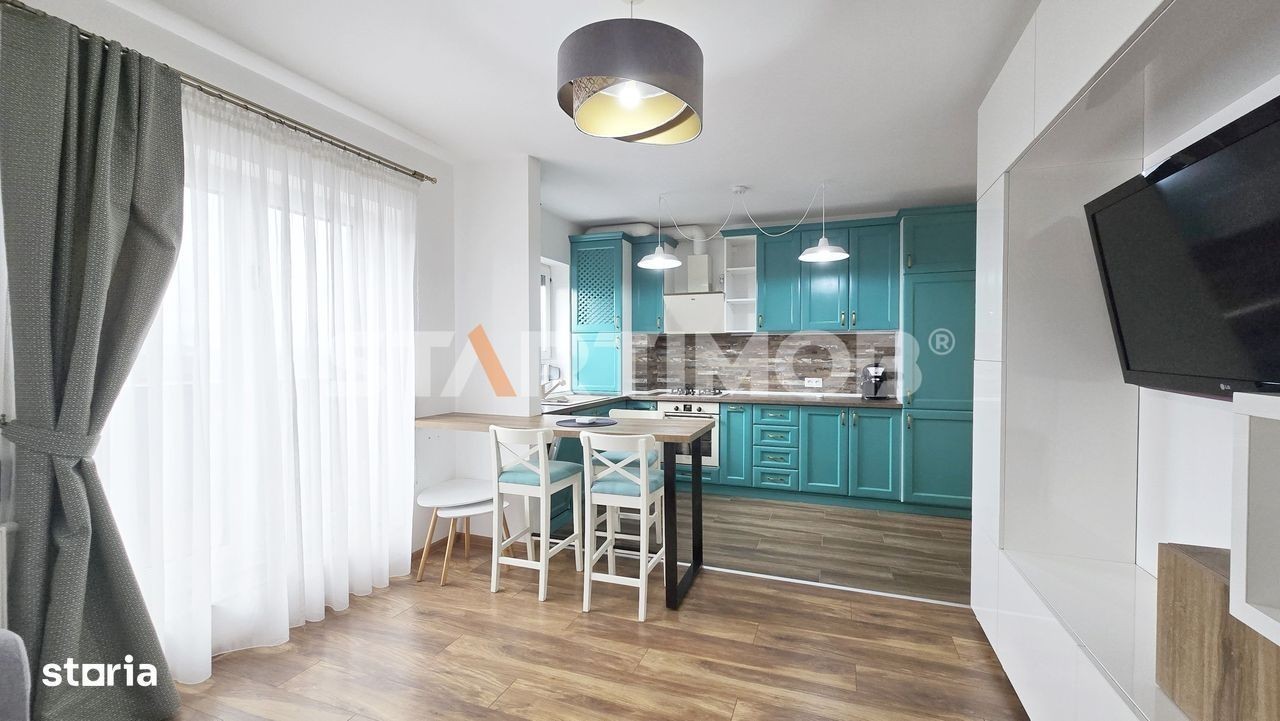 STARTIMOB va propune spre inchiriere un apartament studio situat in Brasov, str. Lebedei, cartier Avantgarden -Bartolomeu. Apartamentul este situat la etajul 6/6, pozitionare sud-vestica cu vedere panoramica asupra orasului, este amenajat modern, cu finisaje, mobilier si electrocasnice de calitate si are in componenta un living open space cu bucataria cu iesire pe terasa, hol, dormitor si baie. Proprietatea dispune de utilitati separate, spatii vitrate mari ce asigura multa lumina naturala, incalzire cu centrala termica proprie marca Vaillant, tamplarie PVC cu geam termopan, bucatarie dotata si echipata complet cu plita pe gaz, cuptor electric si hota electrica marca Franke, combina frigorifica si masina de spalat vase marca Electrolux, aparat cafea DeLonghi, fierbator apa Hausberg, etc ), baie complet mobilata si utilata, inclusiv cu masina de spalat automata cu uscator inclus marca LG, canapea in living, pat dublu cu saltea, noptiere si dulap tip dressing in dormitor, TV LCD in living si dormitor, sistem de aer conditionat Gree Inverter, etc. Totodata apartamentul dispune de parcare supraterana inclusa in pretul chiriei. Zona in care este amplasat apartamentul ofera un mediu curat și sigur, având tot confortul pe care îl oferă orice oraș european care beneficiaza in prezent de toate facilitatile urbane: mijloace de transport in comun, supermarket-uri (Carrefour Express, Lidl, Penny), Pizza Hut, Pepco, centrul comercial La strada, restaurante, cafenele, farmacii, centru de fitness, gradinita, afterschool, scoala de limbi straine, etc. Proximitatea fata de aceste pucte de interes ofera viitorului locatar conditii optime pentru inchirierea unui apartament in aceasta zona. Performanta energetica: -Clasa Energetica/ B -Consumul anual scpecific de energie (kWh/m2an) / 154,76 -Indice de emisii echivalent CO2/ 32,76 -Consum anual specific de energie din surse regenerabile/ 0 Pret inchiriere: 550 Euro/luna Apartamentul este liberl spre inchiriere, detinem cheile proprietatii iar vizionarile se organizeaza pe baza de programare telefonica. Suprafata si compartimentarea apartamentului il recomanda pentru o persoana sau un cuplu. Nu se accepta animale de companie si fumatori in spatiul interior inchiriat. Conditii si modalitate de plata: Se solicita contract garantat pe minim un an, chiria in avans pe prima luna si o garantie in cuantumul unei chirii lunare. Comisionul Agentiei reprezinta 50% din valoarea primei chirii, platibil o singura data la semnarea contractului de inchiriere, indiferent de perioada de derulare a acestuia! Utilitățile se plătesc separat de prețul chiriei, in funcție de consumul lunar. Detalii la nr de telefon :
