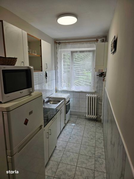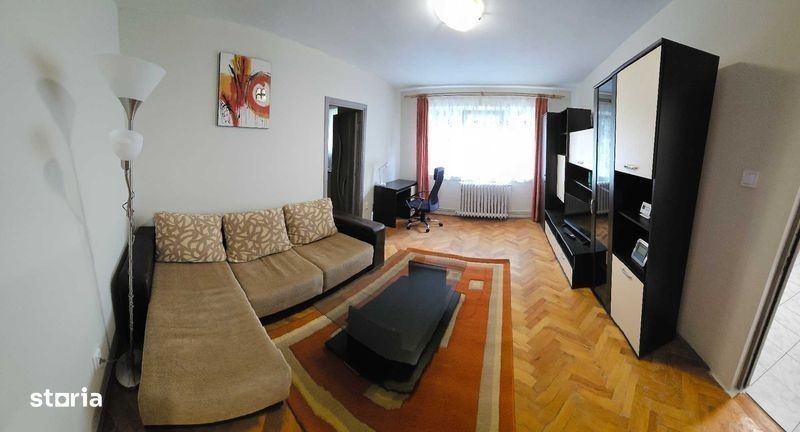 De inchiriat apartament 2 camere nedecomandat, zona Dambul Pietros, in spatele magazinului Darina. Hol, baie reinoita total, bucatarie, balcon incorporat, loc de parcare. Utilat si mobilat complet: aragaz, masina de spalat rufe, frigider, cuptor cu microunda, toaster, TV hd, aspirator, pat 160x200 cu saltea noua, dulapuri, canapea etc. 350 EUR + 1 luna garantie. Disponibil din 20 octombrie. Mai multe detalii la telefon!
