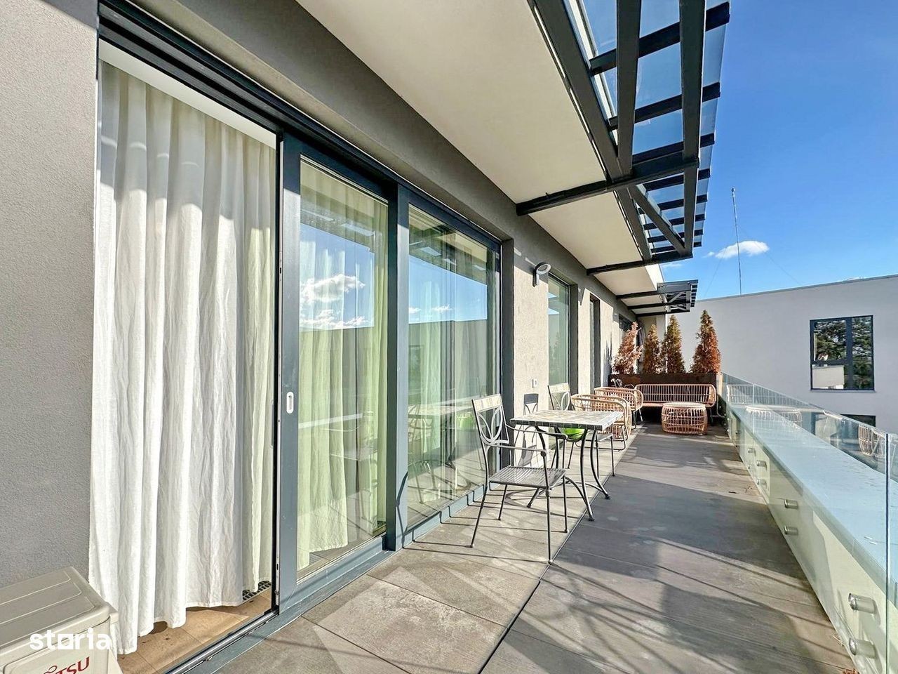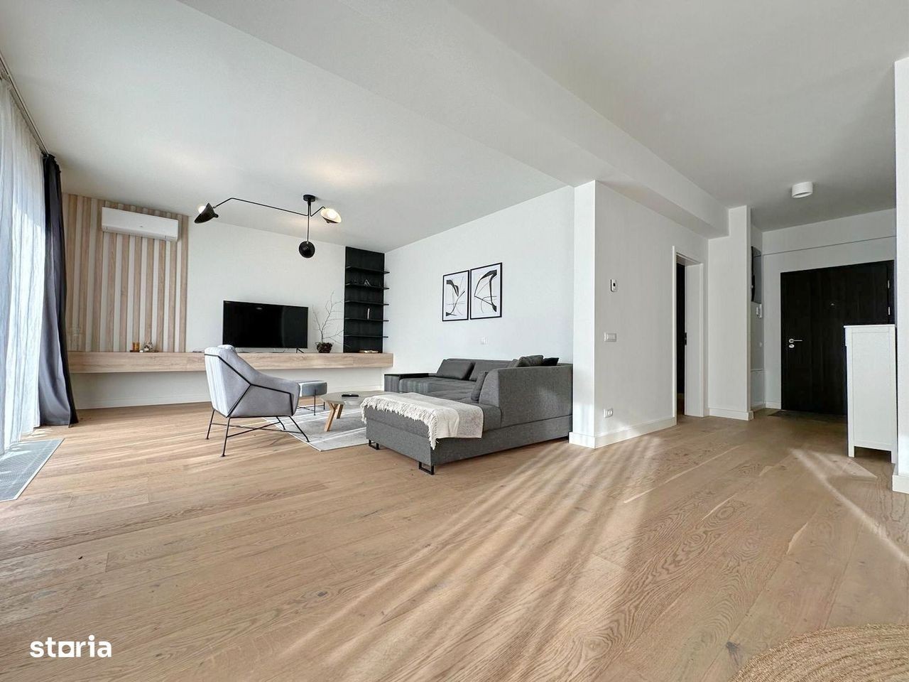 Proprietatea propusa spre inchiriere se afla pe Drumul Poienii, in complexul rezidential Belveo, un complex cu acces privat, la doar doua minute de Livada Postei. Apartamentul dispune de structura decomandata, cu compartimentare practica, suprafete vitrate ample si finisaje premium. Spatiul este compus din zona de zi: living, bucatarie, dining si iesire pe o terasa generoasa cu vedere directa catre Muntele Tampa si padure, si zona privata alcatuita dintr-un dormitor generos si o baie. Tranzactionarea se face cu mobilierul si aparatura elecrocasnica din prezentare, iar in pretul afisat este inclus si un loc de parcare subteran. Garantia perceputa constituie contravaloarea a doua luni de chirie.