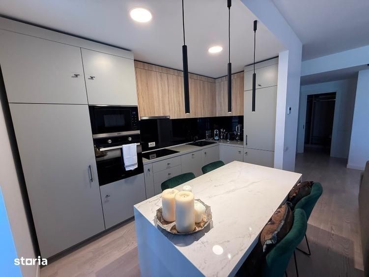The Real Estate Agency vă propune spre închiriere un apartament elegant și spațios cu 3 camere, situat la etajul 2 al unui imobil nou (finalizat în 2020), aflat pe strada Erou Iancu Nicolae. Suprafață utilă: 110 mp Balcon: 19,9 mp, închis, cu vedere deschisă Etaj: 2 din 3 Compartimentare: Living generos cu bucătărie open space Două dormitoare confortabile Dressing spațios Două băi moderne Hol bine organizat Mobilare și utilare: complet mobilat și echipat cu electrocasnice moderne Finisaje: premium, cu atenție la detalii. Beneficii: Balcon închis, spațios, ideal pentru relaxare sau lucru de acasă Loc de parcare inclus în preț Apartament luminos și bine compartimentat Mobilier și electrocasnice moderne, gata de mutat imediat. Localizare și facilități în zonă: Stradă liniștită, cu acces rapid către școli și grădinițe internaționale (Cambridge, Mark Twain, British School, American School) Aproape de restaurante, cafenele, centre comerciale (Jolie Ville, Băneasa Shopping City, Ikea) Acces facil către aeroport și zona de business Pipera-Floreasca Acest apartament reprezintă alegerea ideală pentru o familie sau un cuplu care își dorește un cămin modern, spațios și bine poziționat, în una dintre cele mai exclusiviste zone rezidențiale din Voluntari. La prețul afișat se adăuga TVA!