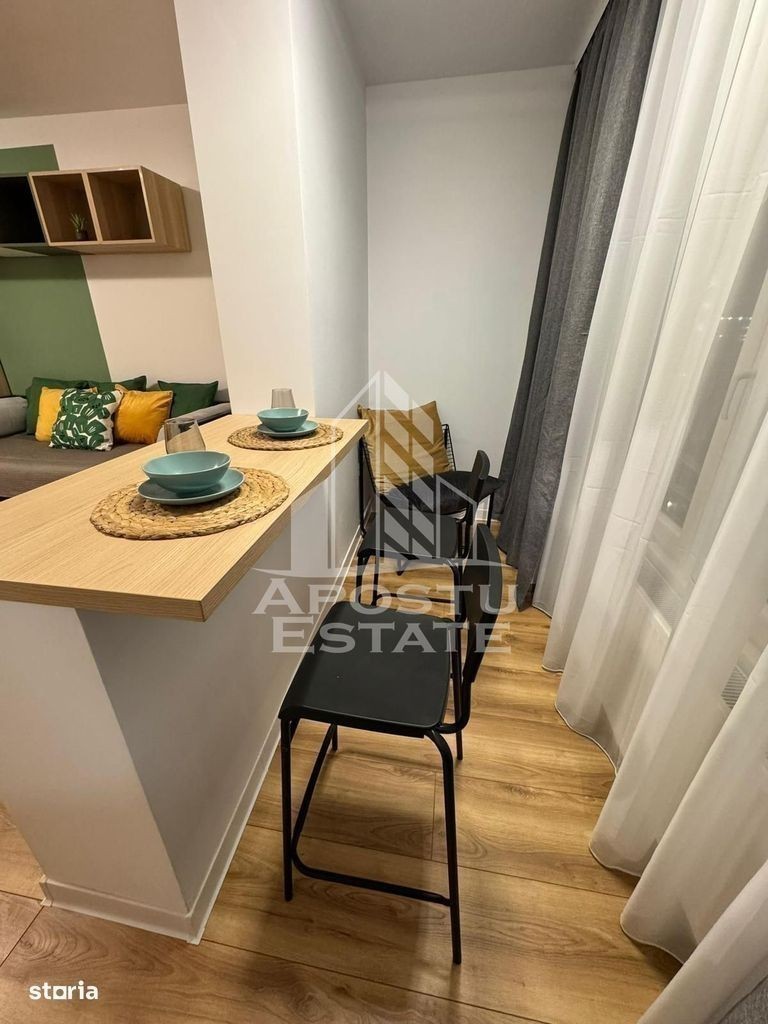 APOSTU ESTATE va propune spre inchiriere un apartament elegant, cu o camera, situat intr-o zona linistita si bine conectata din Timisoara, ideal pentru un cuplu sau o persoana care doresc un spatiu elegant si confortabil. Suprafata utila: 36 mp Compartimentare eficienta: Hol de acces Bucatarie open space complet mobilata si utilata, Living luminos si spatios cu canapea extensibila Baie principala cu cabina de dus Confort si facilitati: Aer conditionat confortul termic este realizat de sistemul de incalzire al orasului Apartamentul este complet mobilat si utilat Diponibil din data de 1.11.2025 Localizare: Zona Take Ionescu - liniste, acces facil spre oras, in apropiere de magazine, scoli si mijloace de transport in comun. Ideal pentru: Cupluri Sudenti Pret chirie: [500 Euro] Programeaza o vizionare! ID intern: CP2779280