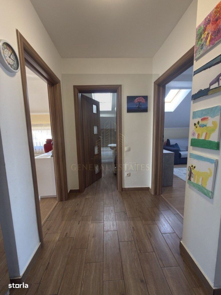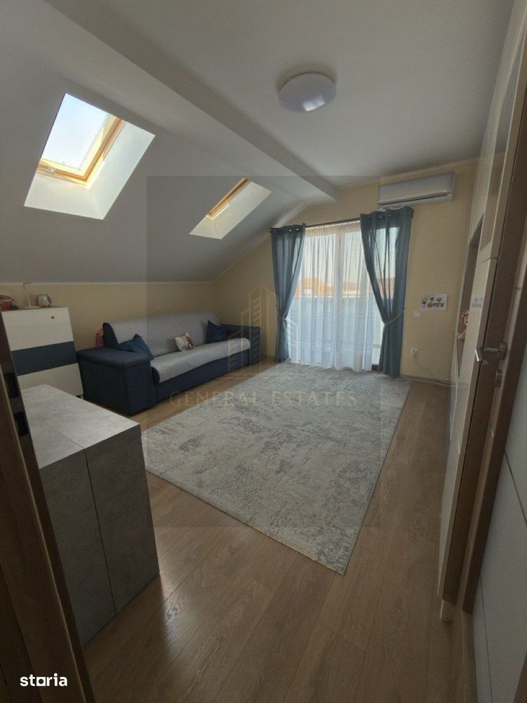 De vânzare - apartament la mansardă, zonă liniștită, bloc mic (6 apartamente) Apartament luminos și plăcut, situat într-un bloc cu doar 6 locuințe, într-un cartier de case aerisit și liniștit - ideal pentru cei care caută confort și intimitate. Detalii proprietate: Suprafață utilă: aprox. 54 mp, Balcon generos de 9 mp, perfect pentru relaxare sau o mică zonă de luat masa Se vinde semimobilat - dormitor complet, bucătărie mobilată și utilată (inclusiv electrocasnice), plus o parte din mobilierul din living Spațiu bine organizat, luminos, cu atmosferă caldă Dotări și utilități: Apă, gaz, curent, internet - toate disponibile, Stradă asfaltată, iluminat public și canalizare, Acces ușor către transport și puncte de interes Localizare: - La 15 minute de mers pe jos de stația de autobuz - La 15 minute cu mașina până la Coresi Shopping Resort Avantaje: Proprietatea este ideală pentru o familie mică, un cuplu sau ca investiție. O locuință liniștită, într-un imobil curat și cu vecini puțini - locul perfect pentru relaxare după o zi agitată.
