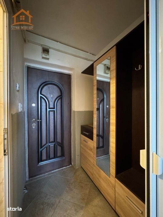 Salutare dagilor! Agentia Scenik Imobiliare Brasov, prin brokerul imobiliar Nicolae Stoica, va propune spre achizitie o garsoniera situata la etajul 4/4, al unui imobil situat pe str. Traian Vuia din orasul Ghimbav! Aceasta este compartimentata astfel - holul de acces, baie, camera de zi, bucatarie. Locuinta este mobilata si utilata dupa cum este prezentata. Mobilierul este complet nou, bucataruia este amenajata corespunzator, detine centrala proprie care realizeaza incalzirea prin calorifere. canapeaua din camera de zi este deasemeni noua, si este extensibila! Un aspect foarte important - detine baie proprie utilata cu o cada, care este amenajata destul de bine, momentan necesitand doar montarea unei chiuvete pentru ca baia sa fie full! Camera de zi este separata de hol si bucatarie prin usi culisante din termopan care izoleaza foarte bine atat fonic, termic cat si a mirosului de la gatitul in bucatarie! Garsoniera este conectata la toate utilitatile! Imobilul este izolat exterior iar hidroizoplatia a fost refacuta in urma cu 1,5 ani. Garsoniera este amplasata foarte bine, fiind amplasata la aproximativ 5 km de aeroport, in zona regasindu-se magazine de alimentatie publica! ca si mobilitate, avem variante - iesire catre aeroport si spre Stupini, deasemeni catre drumul ce traverseaza intreg orasul. Costurile investitiei in vederea achizitiei 33.000 euro! Comision agentie - echivalentul in lei la cursul BNR al sumei de 1.000 euro. Pentru alte detalii si programare pentru vizionare, cu drag aici pentru dvoastra, Nicolae STOICA, owner Scenik Imobiliare Brasov! Tel/wapp