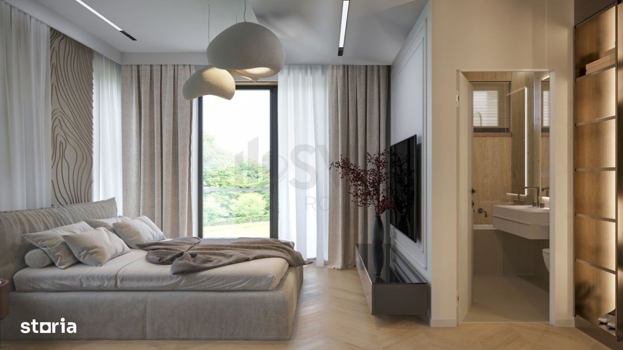 REV2005262 SVN Residentialist va ofera spre vanzare o vila cu 5 camere, parte din ansamblul exclusivist SVN Pipera Homes, amplasat pe strada Elisabeta Rizea, in una dintre cele mai apreciate zone din nordul Bucurestiului. Locuinta are o suprafata utila de 183 mp si o curte privata de 45,10 mp, fiind completata de doua locuri de parcare in fata. Vila este construita pe parter si doua etaje, intr-un design contemporan care imbina functionalitatea, eleganta si confortul la cel mai inalt nivel. La parter, spatiile sunt gandite pentru relaxare si socializare: un living generos cu zona de dining, ce se deschide catre gradina privata, o bucatarie moderna si luminoasa, perfect integrata in conceptul de open living, si un grup sanitar elegant, complet finisat cu materiale premium. La etajul 1, zona de noapte ofera intimitate si confort absolut. Se regasesc doua dormitoare spatioase, fiecare cu dressing propriu, un dormitor matrimonial cu baie proprie si o baie comuna, finisata cu ceramica de top si obiecte sanitare premium. Toate camerele sunt luminoase, cu ferestre ample si finisaje rafinate. La etajul 2, compartimentarea urmeaza aceeasi logica a confortului si spatiului bine optimizat, oferind camere suplimentare ideale pentru birou, zona de relaxare sau spatiu pentru hobby-uri, completate de o baie moderna si spatii de depozitare generoase. Finisajele sunt la standarde premium: parchet stratificat de inalta calitate, scari din lemn masiv, balustrade din sticla securizata, usi Filomuro cu toc din aluminiu negru mat si ceramica italiana in bai. Vila este complet independenta energetic, echipata cu pompe de caldura, fatade ventilate, izolatie performanta, geamuri tripan si sistem de filtrare a apei potabile, oferind apa plata direct la robinet - o inovatie unica in Romania. Proiectul SVN Pipera Homes se desfasoara intr-o comunitate privata, sigura si moderna, cu infrastructura proprie, drumuri cu dublu sens si spatii verzi amenajate. Amplasarea excelenta asigura acces rapid la scolile internationale din zona Iancu Nicolae, centre comerciale, zone de birouri si principalele artere de circulatie din nordul Capitalei. Aceasta vila reprezinta alegerea ideala pentru familiile care isi doresc spatiu, rafinament si siguranta, intr-un mediu exclusivist si o comunitate premium. Va asteptam la vizionare!