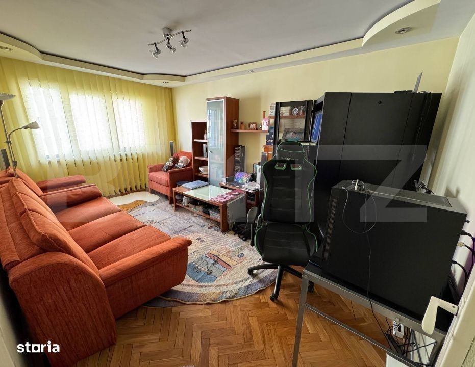 Blitz vă propune spre vânzare un apartament cu 3 camere, situat în zona Vasile Aaron, într-un loc ferit de trafic și zgomot, ideal pentru cei care își doresc confort, liniște și acces rapid către principalele puncte de interes ale orașului. Apartamentul este semidecomandat, are o suprafață utilă de 64 mp și se remarcă printr-o compartimentare practică și luminoasă. Compartimentare: - La intrare, se află bucătăria generoasă, cu balconul închis; - În partea dreaptă, living separat, confortabil și bine luminat; - În partea stângă, un hol care face legătura către: - Dormitorul principal dotat cu pat matrimonial; - Dormitorul secundar; - Baia cu cadă și geam pentru aerisire naturală. - Pivniță la subsol, cu o suprafață de 3,2 mp, ideală pentru depozitare suplimentară. Avantaje suplimentare: - Instalație electrică schimbată; - Instalația de apă a blocului înlocuită; - Scară zugrăvită în 2024; - Lift nou, instalat în 2019; - Centrală termică schimbată în 2019. ** Proprietarul se află în proces de relocare, motiv pentru care unele camere pot conține temporar cutii și obiecte ambalate. Apartamentul se află într-o zonă liniștită și retrasă a cartierului Vasile Aaron, departe de zgomotul stradal, dar în apropierea tuturor facilităților: Piața Rahovei, magazine Profi, școli, grădinițe și mijloace de transport în comun. Pentru mai multe detalii și pentru a programa o vizionare, vă invit să mă contactați!