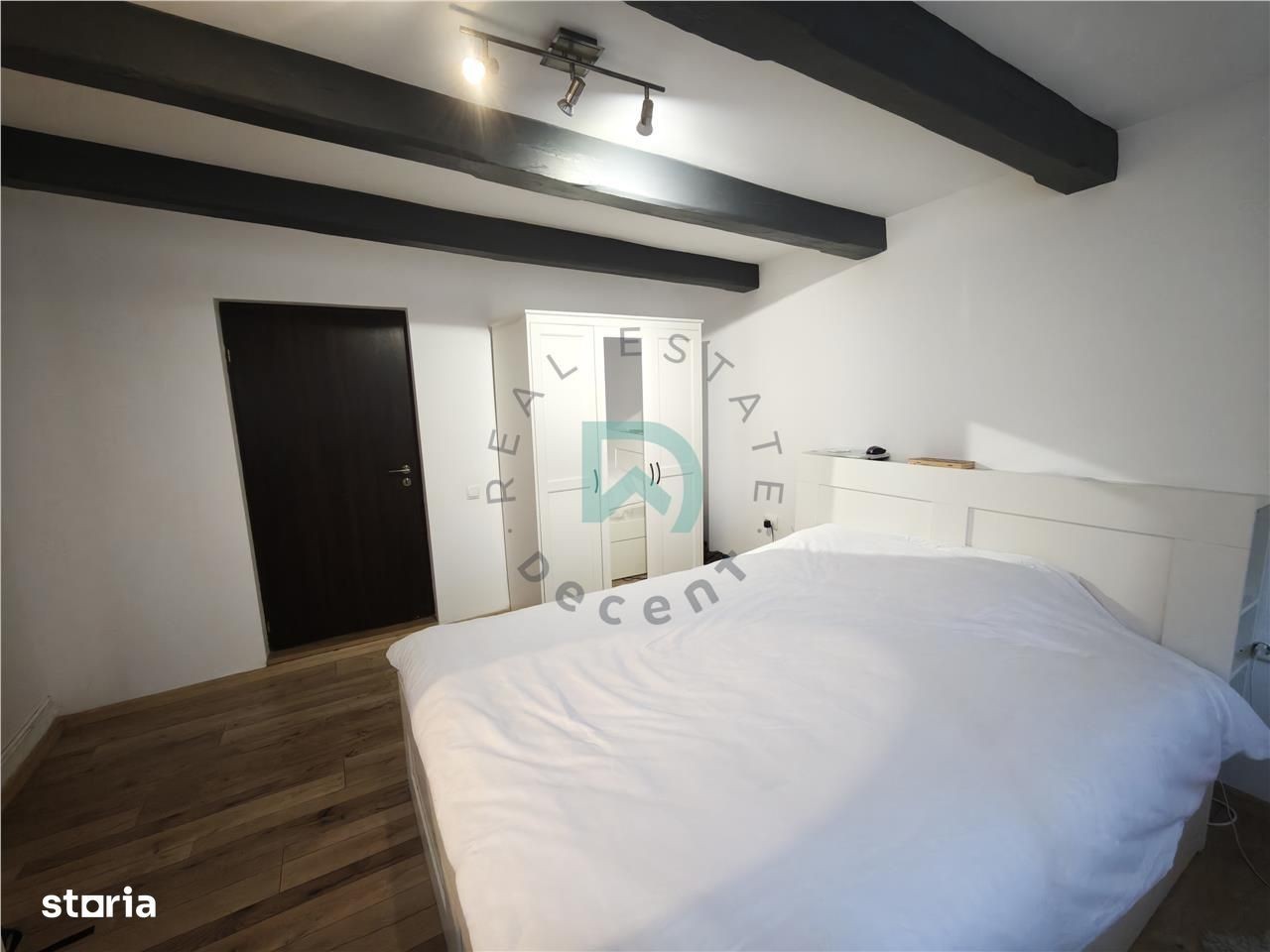 Agentia imobiliara Decent propune spre vanzare un corp de casa situat in Centrul Istoric al Brasovului, in zona Schei - una dintre cele mai cautate si pitoresti zone ale orasului. Proprietatea a fost recent renovata si se vinde complet mobilata si utilata, fiind pregatita pentru mutare imediata. Este ideala pentru o familie sau pentru investitie in regim hotelier (inchiriere pe termen scurt). Compartimentare: Parter: living (camera de trecere), bucatarie, baie cu dus si dormitor Etaj (mansarda): open space generos, dotat cu pat dublu si canapea extensibila - poate acomoda pana la 4 persoane Casa imbina farmecul zonei istorice cu confortul modern, oferind intimitate si acces facil catre principalele puncte de interes ale orasului. Pentru mai multe informatii si vizionari, va invitam sa ne contactati. Agentia Decent - profesionalism si seriozitate in imobiliare.