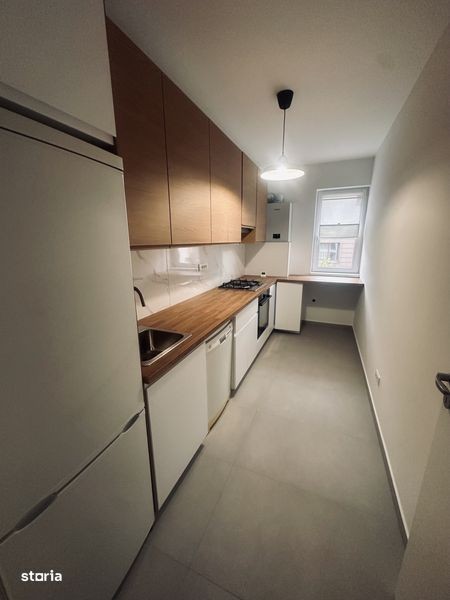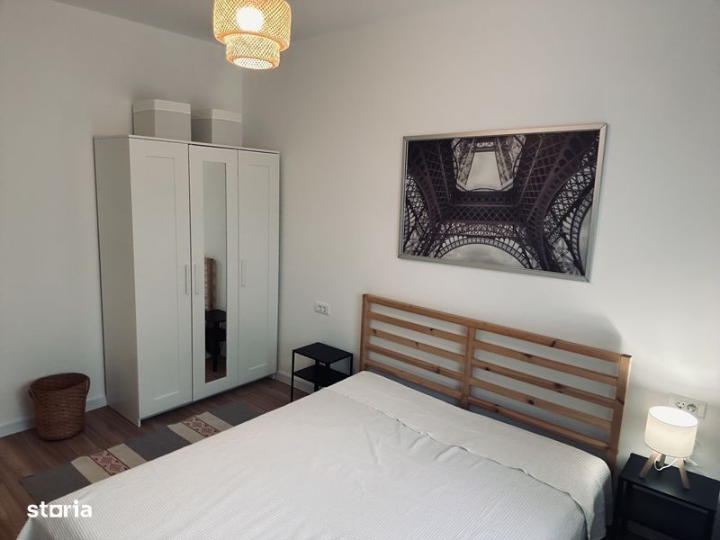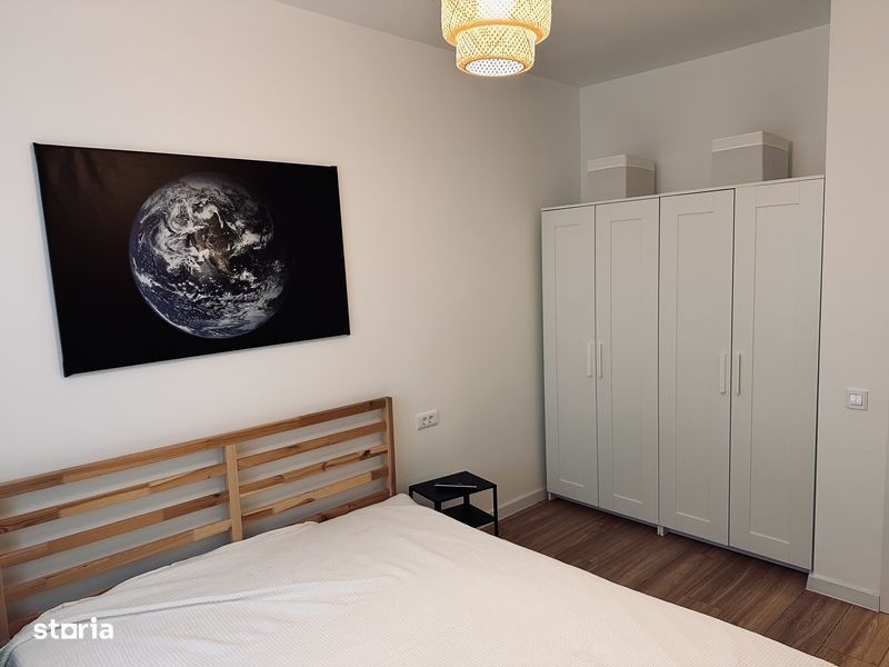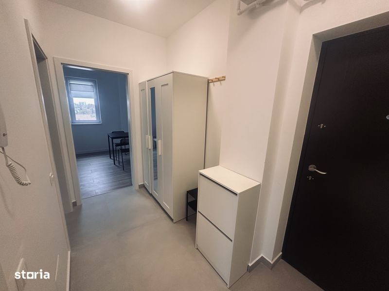 Apartament cu 2 camere situat intr-un bloc nou, finalizat in 2025. Blocul are 4 etaje si dispune de ascensor. Apartament este la prima inchiriere si dispune de living, dormitor, bucatarie inchisa, hol si baie cu cada. Terasa spatioasa a apartamentului are o vedere frumoasa la Lacul Morii. Bucataria este echipata cu plita, cuptor, hota, frigider si masina de spalat vase. Apartamentul dispune de centrala proprie si incalzire în pardoseala, foarte placuta pe perioada iernii. Pozitionarea este in imediata apropiere a mijloacelor de transport (autobuz 434 si 483), metroul si tramvai-ul 41 sunt la 20 de minute de mers pe jos sau la 10 min cu autobuzul. Supermarket in zona Apusului este la 5 min de mers pe jos. Brutarie la colt. Gradinita este langa bloc iar scoli si licee sunt la 5 - 10 minute pe jos (in Chiajna sau in Bucuresti, zona Apusului). Apartamentul se inchiriaza cu contract inregistrat la ANAF. Nu se accepta animale de companie. Garantie - o luna.