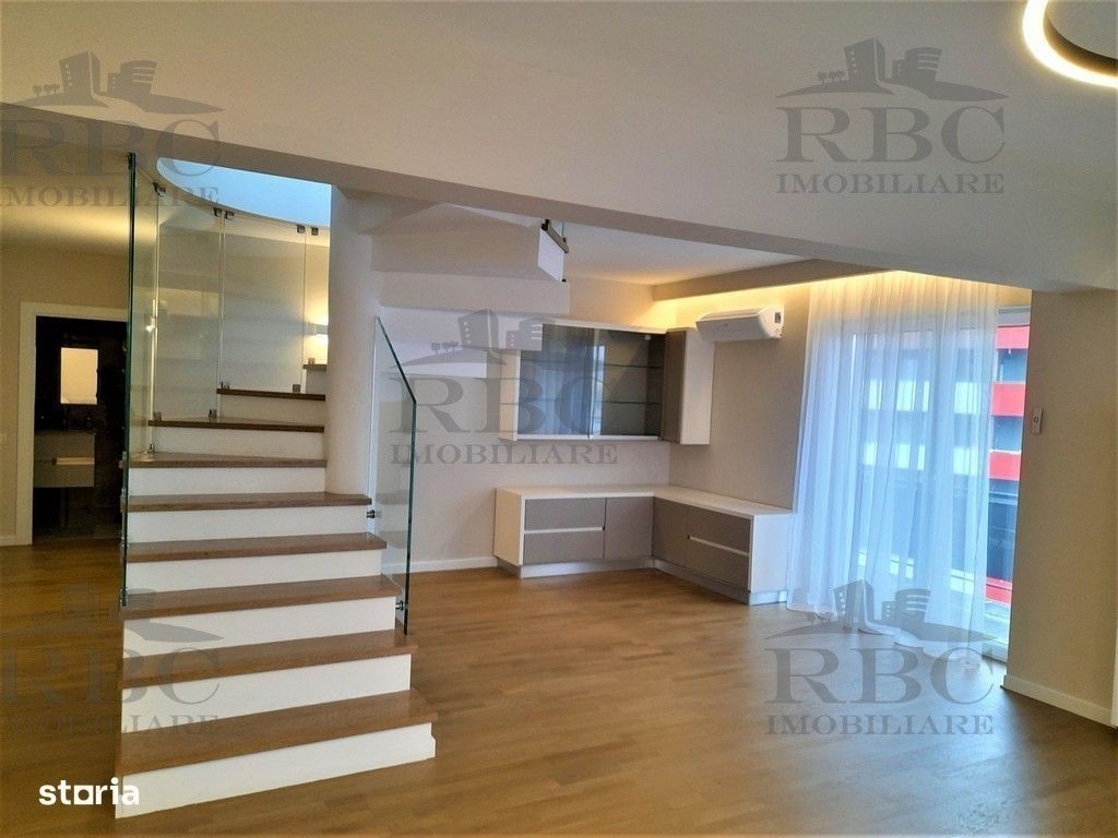 RBC Imobiliare va ofera spre inchiriere Apartament tip penthouse cu 3 camere si 2 terase in Buna Ziua, intr-un imobil nou, retras de la strada principala. Apartamentul oferit inspre inchiriere este situat la ultimele 2 niveluri ale imobilului, se desfasoara pe o suprafata utila de 150 mp, careia se adauga doua terase circulare, una de 146 mp iar cealalta de 67 mp. Orientarea este S-E-V iar compartimentarea este realizata in urmatorul fel: