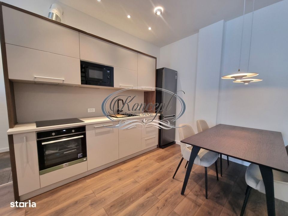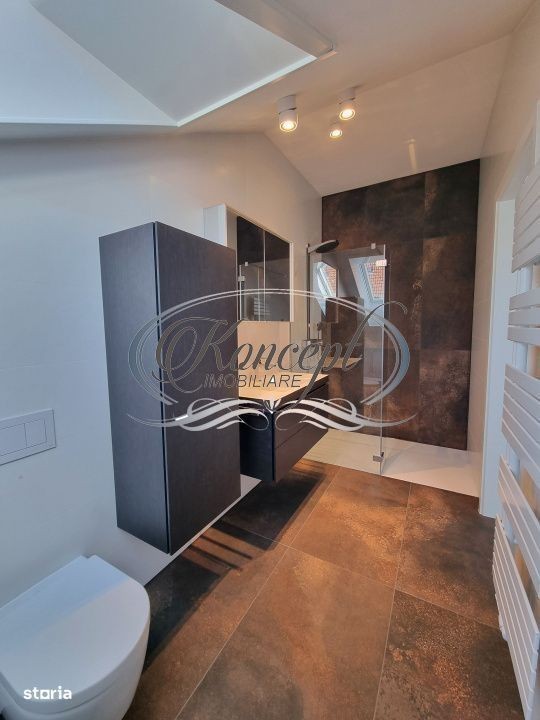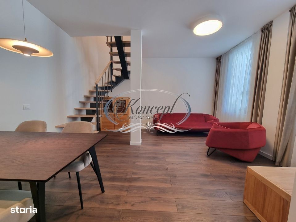 Koncept Imobiliare va propune spre inchiriere un apartament cu design modern, amplasat in zona semicentrala a Clujului, in proximitatea Parcului Feroviarilor. Locatia ofera acces rapid catre principalele puncte ale orasului, fiind aproape de statii de transport public, magazine, banci si alte facilitati esentiale. Proprietatea se afla intr-o casa cu curte comuna, unde sunt doar patru apartamente, garantand un nivel crescut de intimitate si confort. Apartamentul are 80 mp utili si este organizat pe doua niveluri: la parter se afla livingul open space cu bucatarie si zona de dining, precum si o baie de serviciu dotata cu spatii de depozitare, masina de spalat si uscator de rufe si camera tehnica. Etajul mansardat include un dormitor generos cu baie proprie si o camera suplimentara ce poate fi mobilata la cerere. Proprietatea dispune de finisaje moderne, mobilier executat la comanda si detalii de design atent alese, care reflecta calitate si eleganta. Incalzirea se realizeaza prin centrala proprie, cu sistem mixt - pardoseala la parter si calorifere la mansarda. Orientarea spre est asigura o luminozitate placuta pe tot parcursul diminetii. Un element distinctiv il reprezinta acoperisul inaltat, care ofera o inaltime interioara confortabila in camerele de la mansarda. Aceasta locuinta se adreseaza persoanelor care isi doresc un spatiu modern, cu compartimentare avantajoasa si acces facil catre centrul orasului. Apartamentul este disponibil pentru prima inchiriere dupa renovare completa, oferind o experienta locativa de calitate, intr-un mediu atent ingrijit.Pentru informatii complete, programarea unei vizionari sau pentru a afla oferta noastra completa va stam la dispozitie telefonic, prin e-mail sau la sediul agentiei noastre, pe str. Aviator Badescu, nr. 19, Cluj-Napoca.