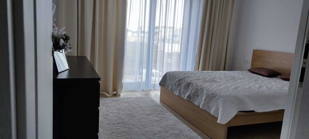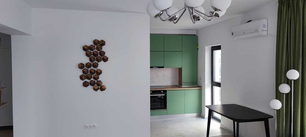 Inchiriez apartament 2 camere, decomandat, Tunari Resort Residence situat intre Tunari si Otopeni, aproape de padure, etaj 1/3, lift, mobila customizata, utilat complet cu aparate electrocasnice: plita inductie, cuptor electric, hota de putere, figider+congelator, masina spalat vase, TV, AC, internet/TV, masina spalat rufe, un loc parcare auto. Bloc dat in folosinta in 2021-2022, usor negociabil. 07********01