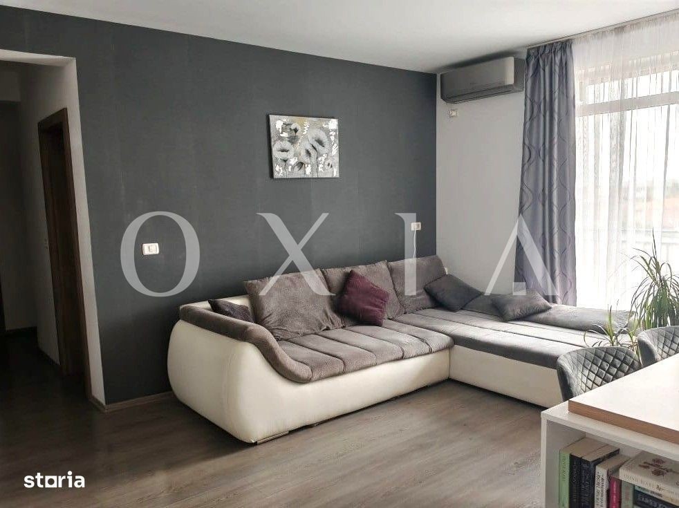 OXIA prezinta spre vanzare apartament cu 3 camere, situat in Giroc/Zona Eso, la etajul 3/3 + pod cu acces din apartament, imobil din 2015, semidecomandat, cu suprafata de 67 mp si terasa de 8 mp, compartimentat asfel: - Hol acces - Bucatarie + Living open space - Hol tranzit - Doua Dormitoare - Baie cu cada si geam pentru aerisire - Terasa cu acces din living Apartamentul beneficiaza de amenajari moderne: placi de gresie/faianta, ferestre PVC cu geam termopan, usi interioare celulare, usa intrare metalica, vopsea lavabila, interfon, etc. Confortul termic este asigurat prin intermediul centralei proprii pe gaz cu incalzire prin pardoseala si prin intermediul sistemului de climatizare (doua unitati). Se vinde mobilat si utilat conform prezentarii. Podul are acces din apartament si este indeal pentru depozitare. Pret 130 000 Euro + comision agentie In pretul apartamentul este inclus un loc propriu de parcare suprateran. Se accepta si achizitionarea prin intermediul unui credit bancar. Oferim consultanta financiara si juridica pe tot parcursul procesului. Pentru stabilirea unei vizionari sau pentru mai multe detalii ne puteti contacta la numarul de telefon