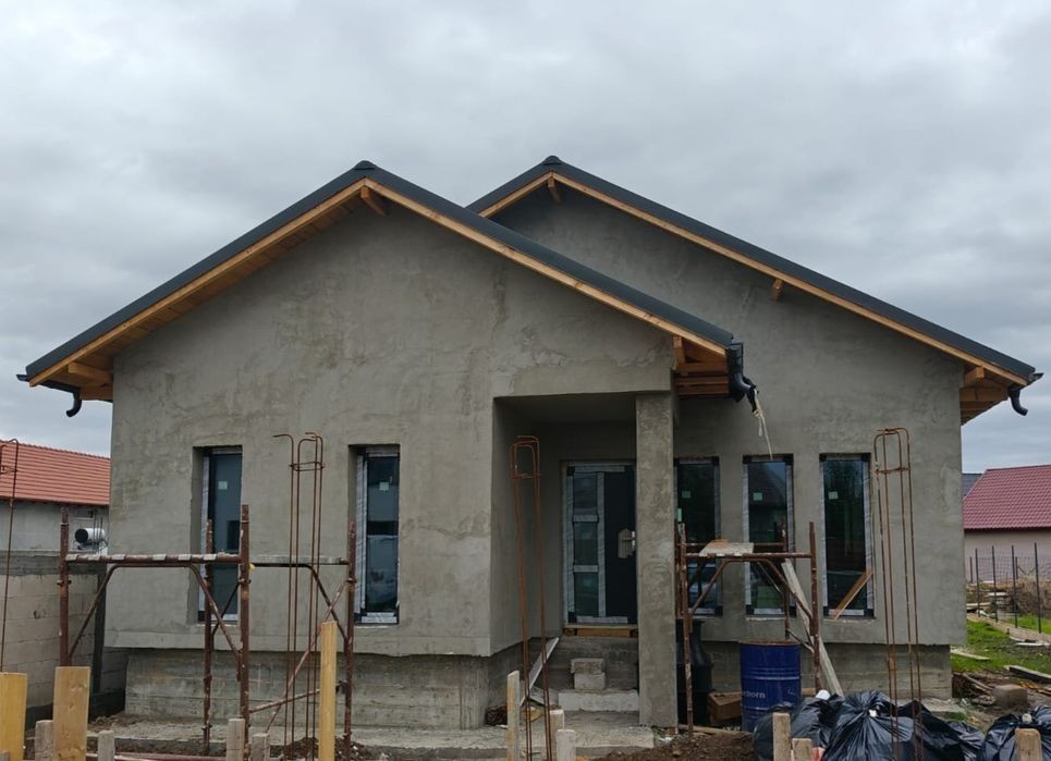 Casă noua de vânzare - Agigea, Cartier Moara Stadiu : la gri Suprafață totală teren: 371 mp Suprafață construită: 142 mp Compartimentare : 2 dormitoare, 1 baie, living open space cu bucătărie si terasă. An construcție: 2025 Structură: BCA Structoterm Izolație exterioară: polistiren 20 cm ESP80 Termopane: PVC Salamander, 7 camere, sticla tripan cu baghetă calda continua, ultima tehnologie Acoperiș: Tabla Bilka Mat Încălzire: centrală pe gaz ( calorifere/ incalzire in pardoseală ) Utilități: apă, curent, canalizare si gaz