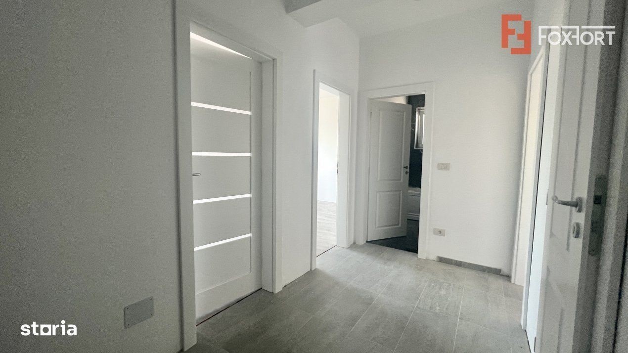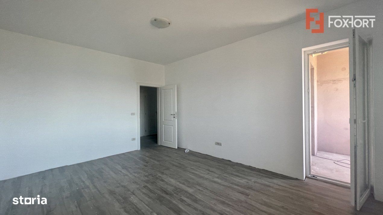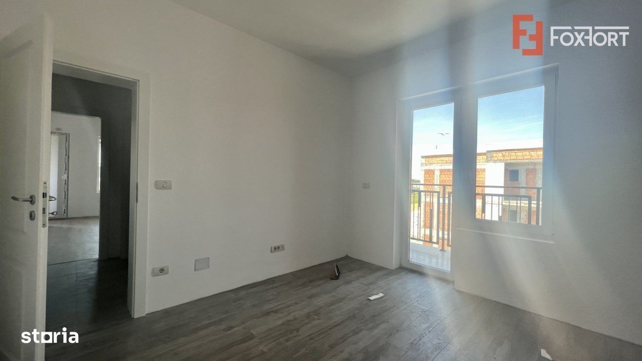 ID intern: V1408 Apartament cu 2 camere de vanzare in Giroc. FOXFORT Imobiliare propune de vanzare un apartament cu 2 camere, decomandat, situat in localitatea Giroc, aflat la etajul 2 intr-un bloc cu regim de inaltime pe Parter + 3 Etaje. Anul constructiei 2024, structura beton, material zidarie caramida. Suprafata utila de 54 mp + 2 balcoane. Apartamentul este structurat astfel: - Hol; - Bucatarie; - Baie; - Living cu balcon; - Dormitor cu balcon. Finisajele interioare sunt moderne: - Usa intrare: metal; - Usi interioare: celulare; - Tamplarie ferestre: pvc; - Podele: parchet, gresie. Incalzirea se realizeaza prin intermediul centralei proprii cu incalzire in pardoseala. Apartamentul dispune de 1 loc de parcare inscris in Cartea Funciara. Pretul este de 94.490€ + comisionul standard al agentiei. Se accepta ca si modalitate de plata cash si credit bancar. Indicator performanta energetica: Clasa A Pentru a vedea toate ofertele valabile actualizate periodic, cu preturi reale si ultimele anunturi imobiliare adaugate intrati acum pe site-ul oficial FOXFORT Imobiliare: foxfort.ro Precizati intotdeauna ca ati vazut oferta cu ID: V1408 Sediu agentie: Strada Mures, Nr. 39A, Timisoara, Timis Mai multe detalii la telefon: **********