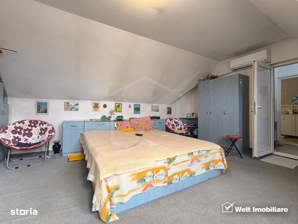 Welt Imobiliare intermediaza vanzare unei case individuale, situata optim, in cartierul Andrei Muresanu, intr-o zona putin circulata cu mijloace auto. Casa este construita pe 2 niveluri, P+M, are 128 m.p. utili, pe o suprafata de 220 m.p. teren si are urmatoarea compartimentare: -La parter: garaj cu inchidere automatizata, boxa de depozitare; 1 terasa exterioara. In locuinta: 1 hol acces, casa scarii, living, bucatarie inchisa, camara, debara, 1 baie spatioasa; -La mansarda: 1 camera (birou), peste garaj, cu scara interioara de acces, catre un spatiu hobby aflat in mansarda. In locuinta: 2 dormitoare, 1 baie spatioasa si 1 debara; Casa a fost construita in anul 2000, iar finisajele si amenajarile sunt cu materiale si design, din acea perioada. De asemenea mobilierul si electrocasnicele sunt vechi. Curtea este incapatoare, existand posibilitatea parcarii a 2 masini, in afara garajului. Exista toate utilitatile: apa, gaz, curent, canalizare, internet, este cu acte in regula, ocupabila imediat. Pentru o vizionare, nu ezitati sa ne contactati! Echipa Welt Imobiliare! ID Proprietate: P51221