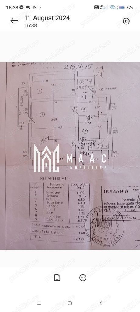 Apartament cu 3 camere - Zonă Traian, locație liniștită MAAC Imobiliare vă propune spre vânzare un apartament cu 3 camere, situat într-o zonă liniștită, în cartierul Traian, ideal atât pentru locuit, cât și pentru investiție. Suprafață utilă: 60 mp Suprafață construită: 65 mp Etaj:3 Compartimentare:funcțională, bine organizată Finisaje:clasice Gigacalorimetru Locația este un mare avantaj, fiind în apropierea spitalului, a magazinelor și a diverselor spații cu activități comerciale și servicii, oferind acces rapid către punctele de interes ale orașului. Apartamentul este luminos, bine întreținut și oferă viitorilor proprietari posibilitatea de a-l personaliza în funcție de propriul stil. Avantaje: * Zonă liniștită, accesibilă * Etaj intermediar * Compartimentare eficientă * Aproape de spital, magazine și alte facilități * Ideal pentru familie sau investiție Pentru mai multe detalii și programarea unei vizionări, contactați MAAC Imobiliare. id: CP2783760