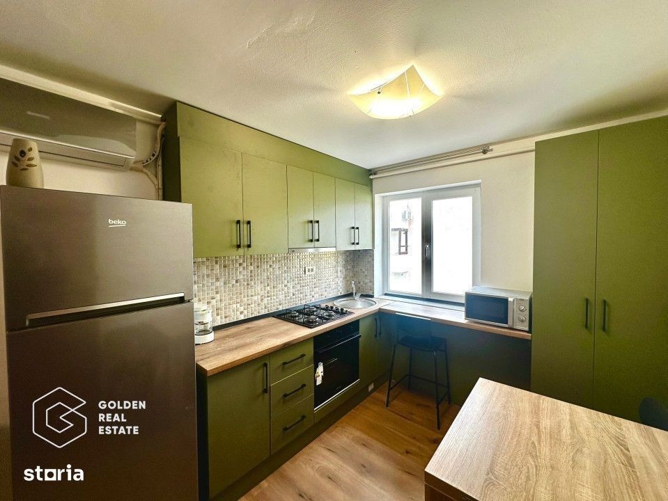 Golden Real Estate vă propune spre închiriere un apartament superb, unde fiecare produs este cumpărat recent, nou, iar apartamentul utilat și mobilat, este decomandat, situat la aproximativ 3 minute de centrul orașului Arad. Situat în inima unei zone superbe, acest apartament oferă oportunitatea perfectă pentru cei care caută confort și rafinament. Cu o suprafață generoasă, acest apartament oferă tot ceea ce aveți nevoie pentru un stil de viață urban comod. Apartamentul dispune de un spațiu interior de 70mp utili și se compune dintr-un living amenajat cu bun gust împreună cu o bucătărie complet utilată și mobilată cu electrocasnicele de calitate oferind un spațiu perfect pentru prepararea de mâncăruri delicioase, alături de înca o cameră unde avem dormitorul și nu în ultimul rând, baia. Caracteristici principale: -2 camere spațioase și luminoase, perfecte pentru confortul dumneavoastră și al familiei; -centrală proprie termică; -design modern: beneficează de finisaje de înaltă calitate, calitate superioară și un design interior contemporan, ce oferă o atmosferă placută și relaxantă; -climă nouă: dispune de un sistem de încălzire/răcire eficient,asigurând un confort termic optim în toate încăperile; -bucătărie: o bucătărie complet mobilată, utilată și dotată cu electrocasnicele de ultimă generație, bucătărie ideală pentru prepararea celor mai delicioase mese; -baie: 1 baie elegantă, având cadă. Dotări și facilități suplimentare: -foarte aproape de centrul orașului; -liniște; -spații verzi și amenajate în cadrul complexului; -supraveghere video pentru siguranța locatarilor; -acces facil către mijloacele de transport în comun, magazine, școli și alte puncte de interes comun. - dispoibilitate imediată. Nu ratați ocazia de a trăi într-un apartament de lux, cu toate facilitățile necesare pentru un stil de viață modern și confortabil. Pentru mai multe informații sau pentru a programa o vizionare, vă rugăm să ne contactați la numărul de telefon afișat în anunț. Este o oportunitate unică pe care nu doriți să o ratați! Preț: 318 Euro, ușor negociabil. Agent exclusiv Golden Real Estate