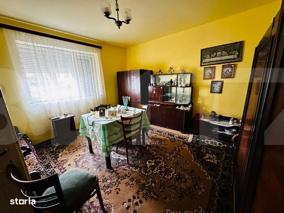 Blitz Romania propune spre vanzare o casa situata in localitatea Macea, judetul Arad, amplasata intr-o zona linistita, pe drum asfaltat. Proprietatea dispune de un teren generos de 942 mp, cu front stradal larg, oferind multiple posibilitati de amenajare sau extindere. Casa are o suprafata construita de 101 mp, la care se adauga o anexa de 18 mp, pivnita si pod, ideale pentru spatiu suplimentar de depozitare sau extindere. Imobilul este amplasat intr-o zona placuta si bine intretinuta, cu acces facil si vecinatati linistite, fiind alegerea potrivita pentru cei care isi doresc un camin confortabil si un teren generos aproape de Arad.