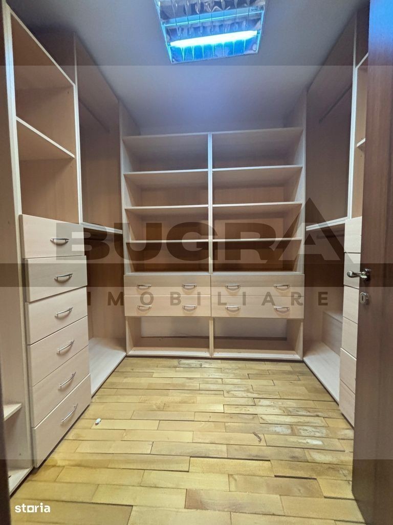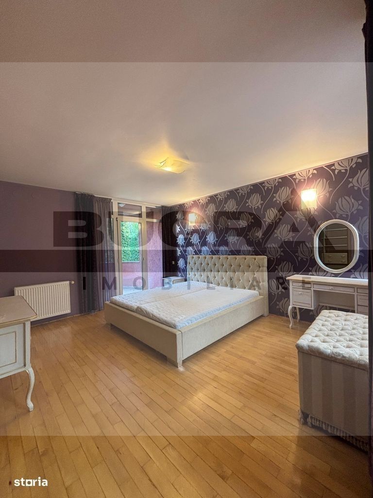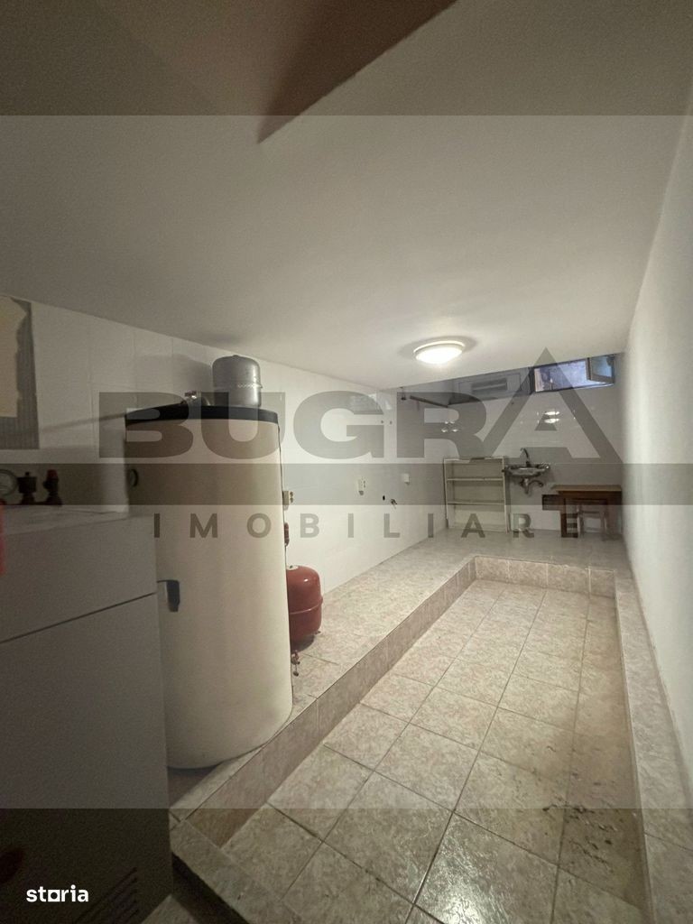Bugra Imobiliare ofera spre închiriere o casă înșiruită, spațioasă și bine compartimentată, situată pe o alee privată, într-o zonă liniștită din cartierul Buna Ziua, aproape de magazine, grădiniță și stații de transport în comun. Detalii proprietate: Regim de înălțime: Demisol + Parter + Etaj + Mansardă Compartimentare: Demisol: garaj pentru 2 mașini, sală de sport, cameră tehnică, debara Parter: living generos cu acces spre curte, bucătărie cu loc de luat masa, cămară, baie de serviciu Etaj: 2 dormitoare copii, baie, dormitor matrimonial cu dressing și baie proprie Mansardă: dormitor cu baie, saună și terasă spațioasă Pod: spațiu de depozitare Dotări și beneficii: Centrală termică Finisaje Curte amenajată Mobilată parțial Casă luminoasă, cu spații generoase Disponibilă cu data de 15 Septembrie Contact Bugra Imobiliare - pentru detalii și programarea unei vizionări.