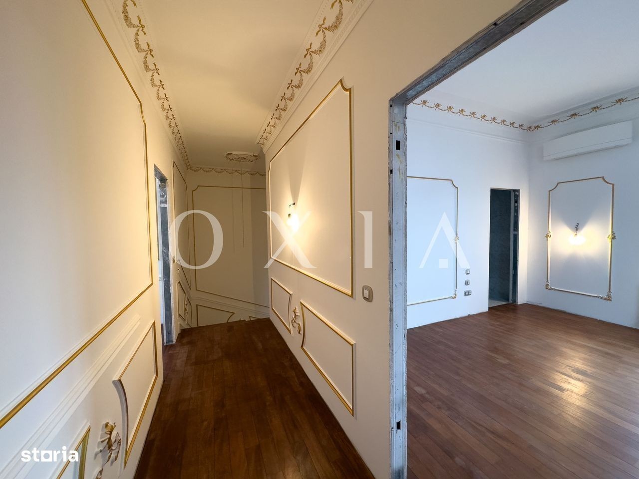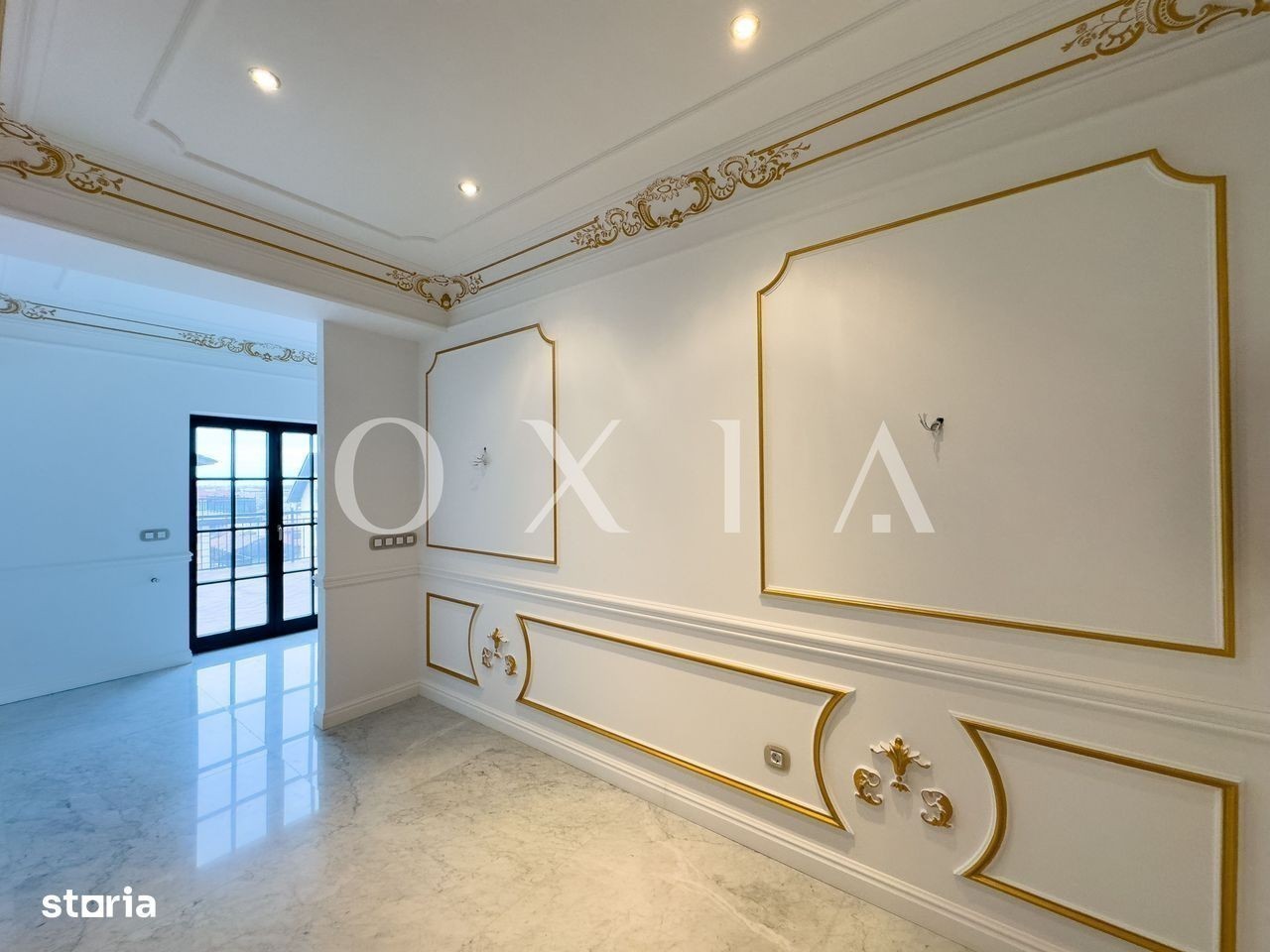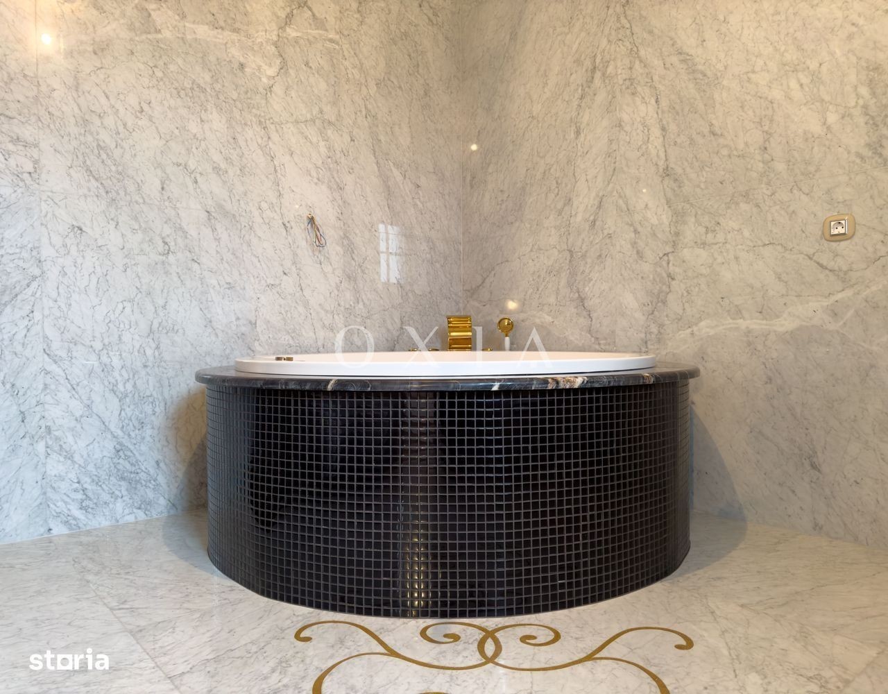 Va prezentam un penthouse de exceptie, situat intr-un imobil modern, construit in 2014, ce imbina stilul baroc cu confortul contemporan. Cu o suprafata generoasa de 280 mp (198 mp utili + 85 mp terase), aceasta proprietate unica ofera un stil de viata exclusivist pentru cei care apreciaza eleganta si rafinamentul. CONFIGURARE INTERIOARA: Primul nivel: Hol spatios cu acces catre casa scarii Living impresionant, ideal pentru momente de relaxare sau socializare Bucatarie luminoasa, complet utilata Birou intim, perfect pentru lucru sau studiu Baie moderna Doua terase, care completeaza perfect spatiul interior Al doilea nivel: Hol de acces catre zona privata Doua dormitoare principale, fiecare cu baie proprie si dressing Un dormitor secundar, ideal pentru oaspeti sau familie DETALII DE AMENAJARE: Stil baroc distinctiv, cu finisaje premium. Bai placate integral cu marmura de cea mai inalta calitate: Carara, Porto Nero, Dorato si Marquisa Parchet stratificat de 22 mm din lemn exotic, care adauga un plus de eleganta si durabilitate Pereti si tavane decorate cu muluri elaborate, pictate manual in tonuri de auriu CONFORT SI DOTARi: Centrala cu condensatie Viessmann, completata de calorifere eficiente Sistem de climatizare Daikin, programabil prin Wi-Fi pentru un control optim si modern Curent trifazat, oferind flexibilitate pentru orice necesitate tehnica Garaj subteran, oferind siguranta si acces facil LOCATIE: Situat in zona Mehala, intr-un cartier linistit si bine conectat, penthouse-ul ofera acces rapid la punctele de interes din Timisoara, precum si intimitate si confort pentru viitorii proprietari. DESTINATIE: Aceasta proprietate exclusivista este ideala atat pentru locuinta, cat si pentru inchiriere in regim hotelier, fiind un spatiu perfect pentru cei care doresc sa imbine utilitatea cu luxul. PRET: 355. 000 euro Echipa OXIA ofera consultanta financiara si juridica pe tot procesul tranzactiei, pentru o experienta completa si fara griji. Contactati-ne pentru detalii suplimentare sau pentru a programa o vizionare! La OXIA, transformam proprietatile in povesti de succes.
