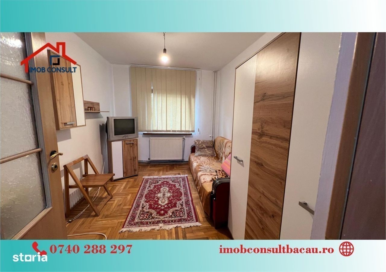 Imob Consult Bacau iti prezinta spre inchiriere un apartament cu 3 camere situat pe strada Mioritei, in proximitatea Supermarketului Carrefour. Apartamentul are o compartimentare decomandata, este prevazut cu balcon inchis si are suprafata utila de 70 mp.