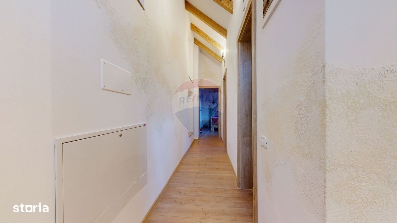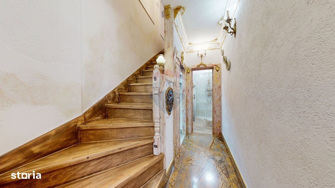 Dacă ești în căutarea unei case cu personalitate, unde fiecare colț spune o poveste și fiecare finisaj te transpune într-o atmosferă regală, ai ajuns în locul potrivit. Îți prezentăm un corp de casă spectaculos, amenajat cu un rafinament rar întâlnit, unde detaliile în stil baroc se îmbină armonios cu elemente artistice unice. De la holul impunător decorat cu vitralii și coloane din mozaic, cu pardoseală din marmură, până la bucătăria complet mobilată/utilată și decorată cu sculpturi clasice și accente aurii - totul creează o atmosferă elegantă și primitoare. Detalii financiare: - Investiție : 245.000 Euro - Comision agenție: 0% - Onorariu notarial si taxe OCPI: în sarcina cumpărătorului - Impozit pe venitul generat de vânzare: în sarcina vânzătorului - Moneda tranzacției: EURO Detalii tehnice: - Localizare: str. Crișan, nr. 56, Brașov - Curte comună cu 3 vecini - Nr. camere: 3 - Suprafață utila: 103 mp - Dispunere: Parter + Mansardă - Număr bai : 2 (duș și jacuzzi) - Cameră dressing - Spații depozitare - Sistem de încălzire : încălzire în pardoseală - Mobilat și Utilat: se vinde conform materialelor foto/video mai puțin masa mare cu cele 2 scaune și TV din living, dispenserul de hârtie din bucătărie si pătuțul de copil. De pe terasa nu rămân masa, scaunele și toboganul. Detalii juridice: Agenția imobiliară RE/MAX Champions Brașov a verificat următoarele documente: - Extrasele de carte funciara - Documentele de dobândire a proprietății - Releveu - Certificat energetic - Documente personale proprietari Având in vedere verificările juridice efectuate, suntem bucuroși sa va informam ca imobilul ce urmează a fi cumpărat este in regula din punct de vedere juridic si este liber de sarcini. Potrivit analizei noastre, nu au fost identificate probleme juridice care ar putea afecta valabilitatea tranzacției. Pentru a înțelege mai bine proprietatea, te invit să parcurgi turul virtual interactiv disponibil in aceasta pagina, din confortul casei tale și să ne suni pentru a programa o vizionare dacă vei considera că ți se potrivește. Cu drag, Echipa RE/MAX Champions