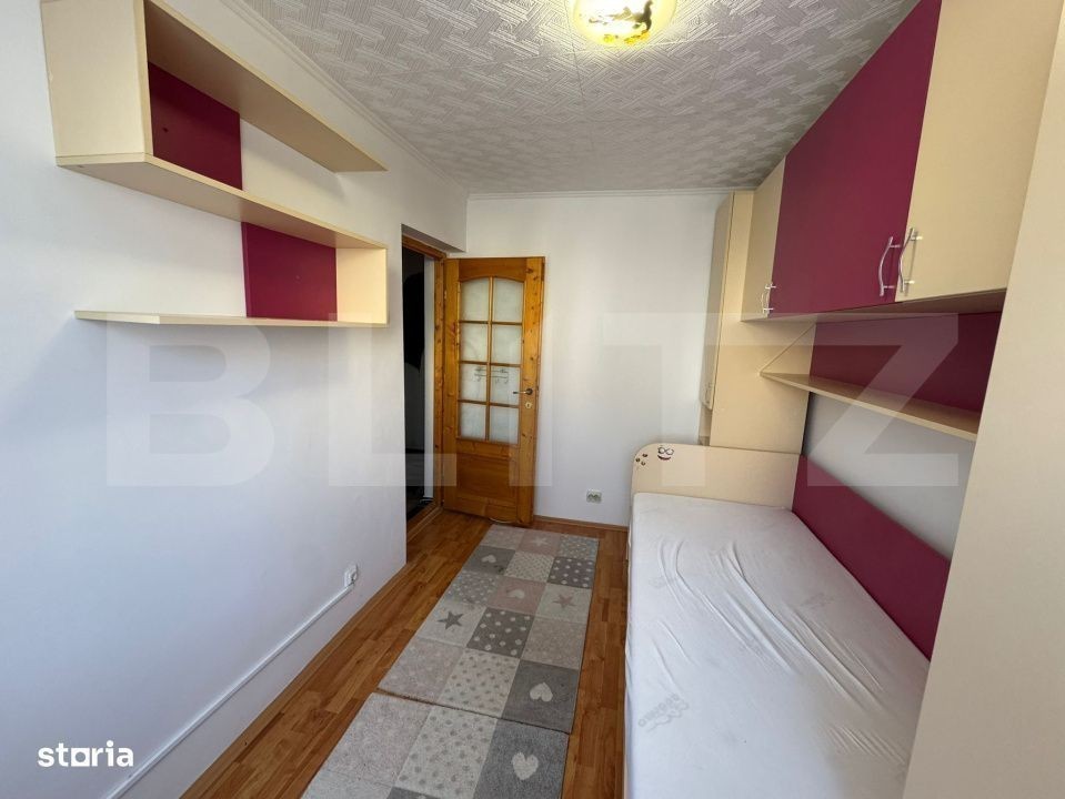 Blitz vă oferă spre închiriere un apartament decomandat, compus din două dormitoare, living spațios, bucătărie separată și baie. Apartamentul este situat la etajul 4 din 4, într-un bloc izolat pe interior, ceea ce asigură confort termic sporit. Dispune de aer condiționat, oferind un climat plăcut în orice anotimp. Locuința se află într-o zonă liniștită, cu acces facil la mijloacele de transport în comun, magazine, și spații verzi - ideală pentru familii sau persoane care caută un mediu relaxant. Dotări pentru confort maxim: -Parcare -3 minute de statia de autobus -Langa magazin alimentar, gradinita, in apropiere de scoli, farmacii Fara animale de companie. Disponibila imediat. Contactează-ne pentru detalii și programarea unei vizionări!