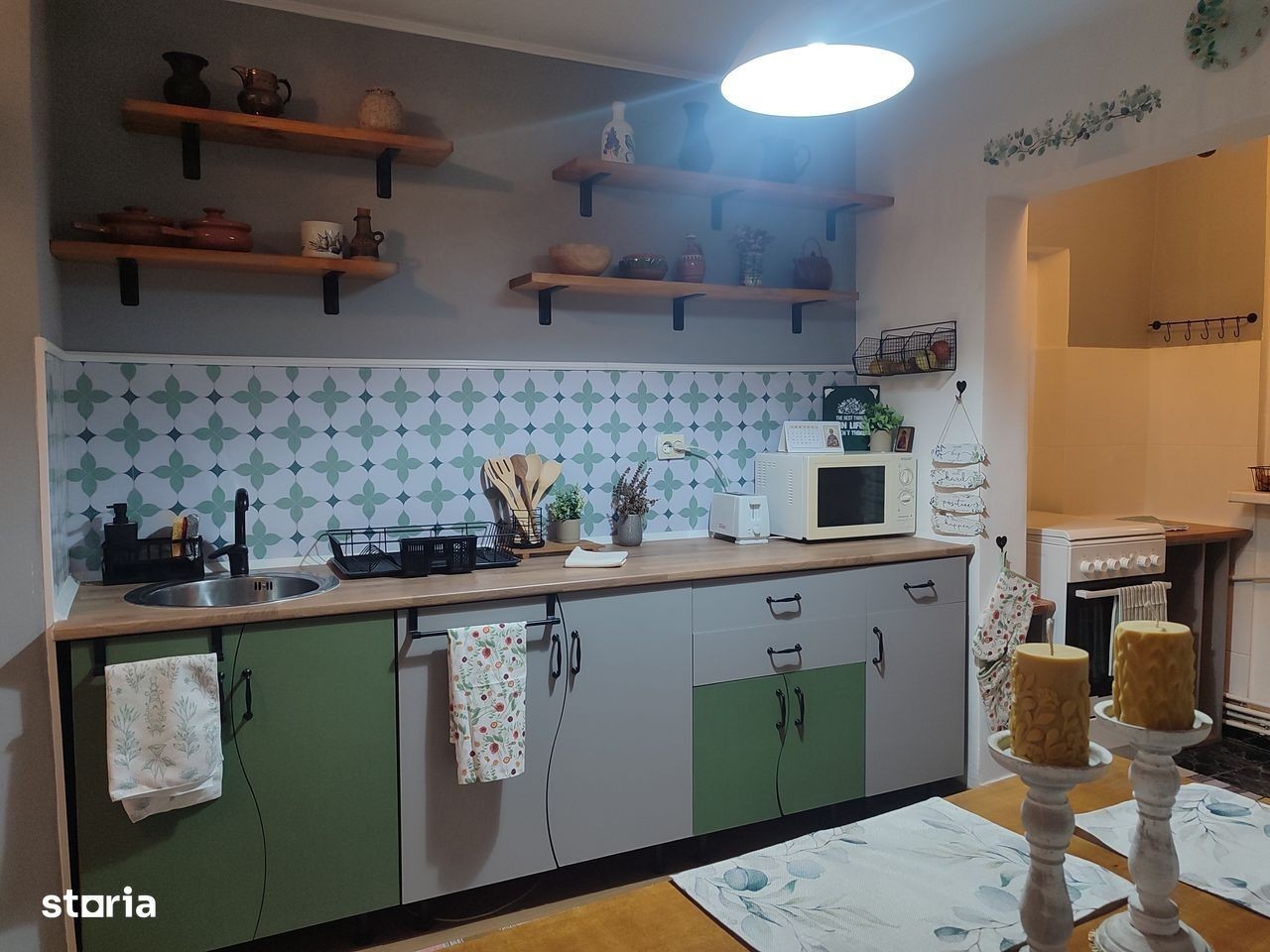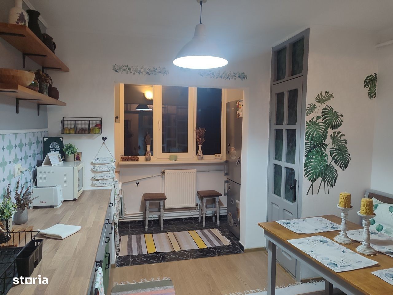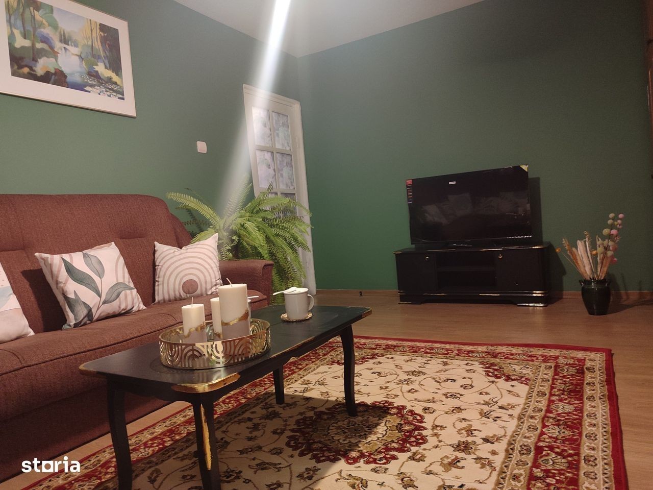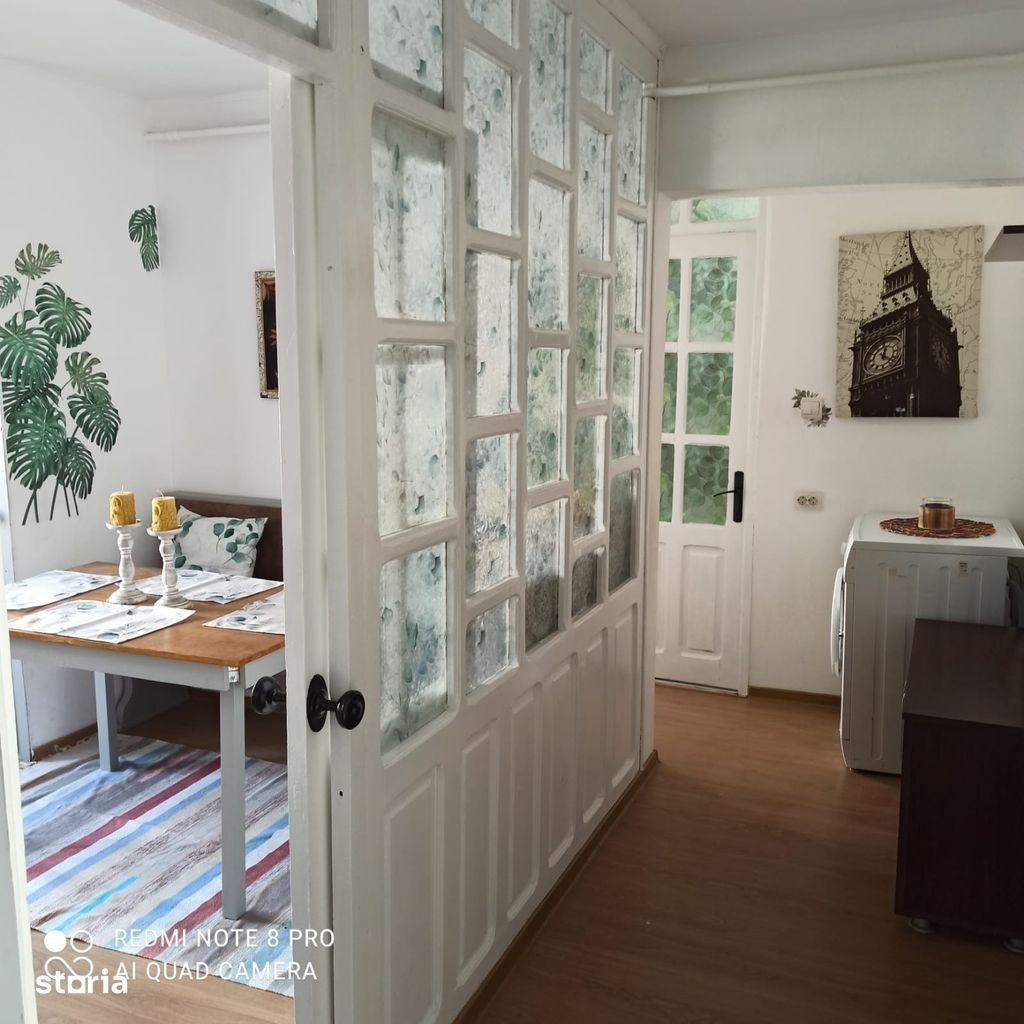 Închiriez apartament decomandat, utilat și mobilat, 2 camere, etaj 3. Se închiriază conform pozelor, dispunând de doua camere cu suprafețe generoase, dispuse de o parte și de cealaltă a bucătăriei, ceea ce asigură intimitate. Bucătăria dispune de cămară și este dotată cu tot ce este necesar unei locuințe confortabile - frigider, aragaz, cuptor cu microunde. Apartamentul dispune de centrală termică pe gaz, televizor smart, nou și mașină de spălat rufe.