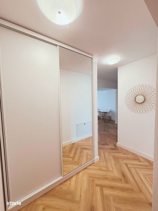Apartament la cheie, mobilat si utilat complet situat in elegantul proiect tip boutique, My Place Residence. Amenajarea si mobilierul customizat au fost realizate cu grija la fiecare detaliu. Spatiul te intampina cu o atmosfera intima, cocheta dar aerisita, fiind in acelasi timp gandit pentru a satisface pe deplin nevoile practice ale locatarilor. Spatiile de depozitare sunt multiple, optimizate pentru fiecare incapere. Finisajele sunt realizate din materiale de foarte buna calitate, ceea ce contribuie la starea de confort pe care imobilul in ansamblu si apartamentul in particular o confera. Camerele sunt dotate cu aer conditionat. Vederea este pe spate, fara zgomot de trafic. Acesta este localizat in zona de nord a capitalei si ofera acces facil către Promenada Mall sau Baneasa Shopping City, supermarket-uri, sali de sport, scolile private si cladirile de birouri din zona. De asemenea, in imediata apropiere a complexului se regasește o stație de autobuz pentru liniile 416, 449 si 459.
