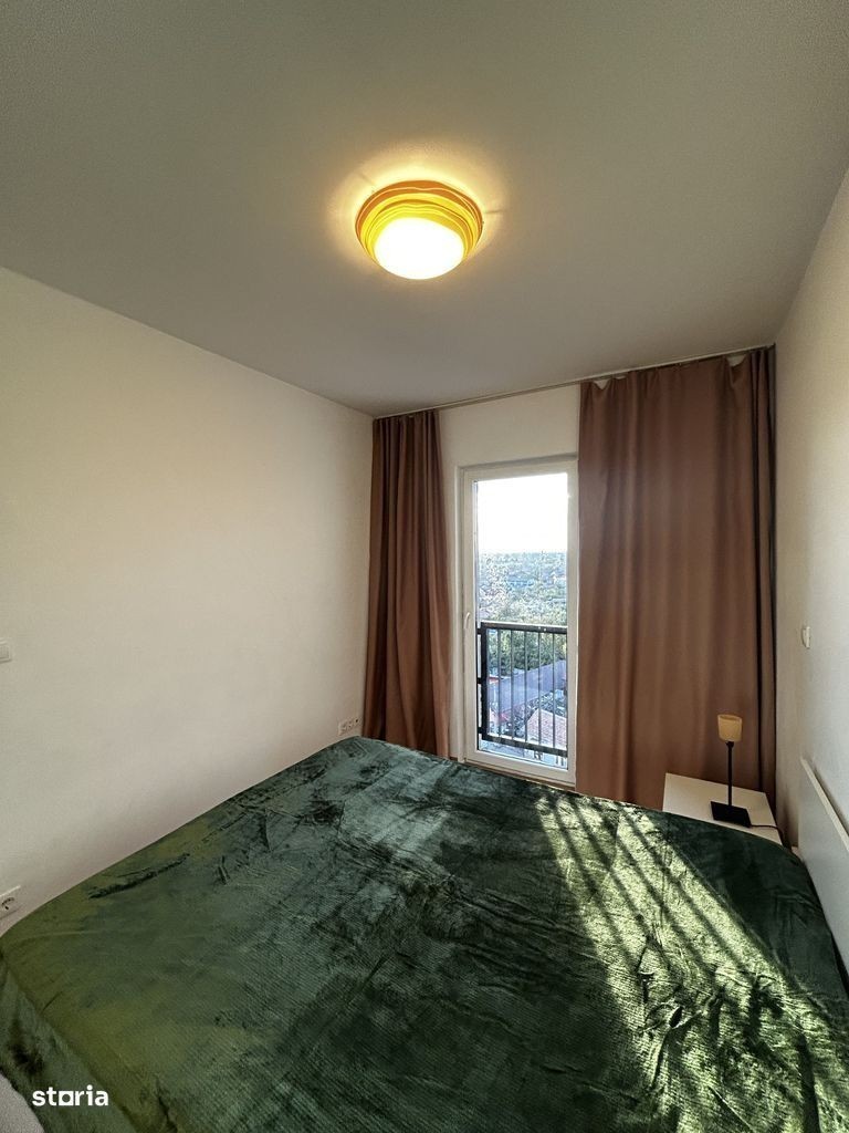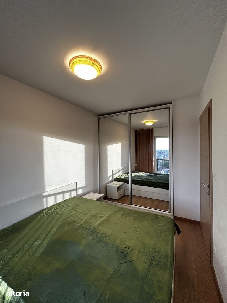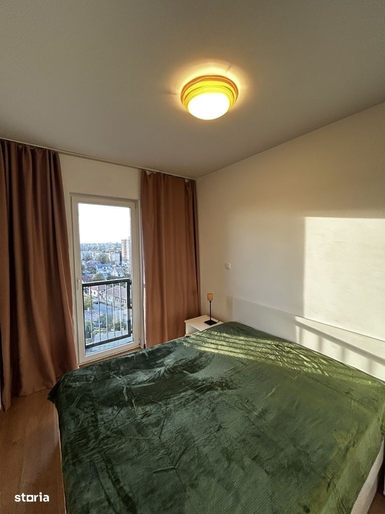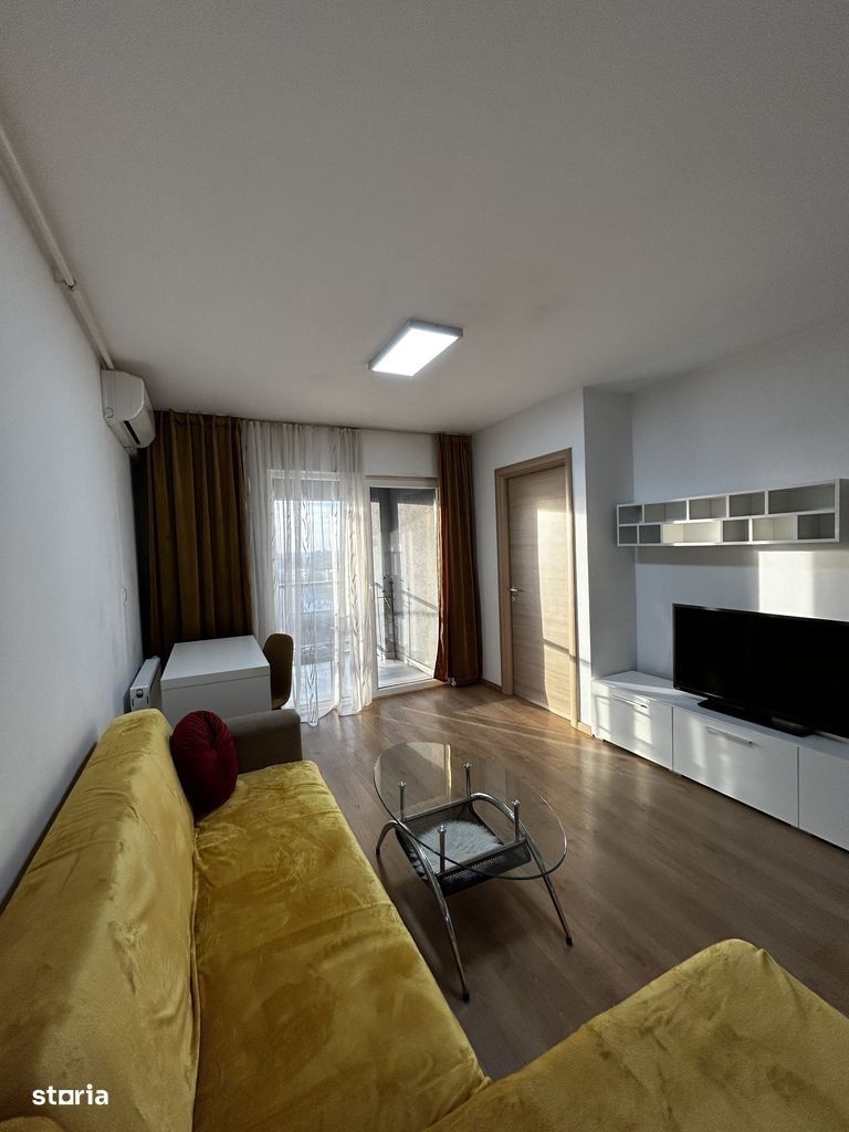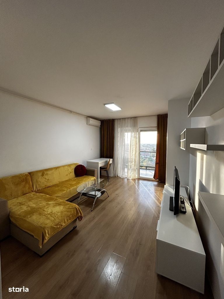 Apartament cu 2 camere de închiriat în complexul Adora Park, situat la etajul 9, cu o priveliște panoramică asupra orașului, ideală pentru a savura cafeaua de dimineață. Locuința este modernă și luminoasă, compusă din living open-space cu bucătărie complet utilată și canapea extensibilă, dormitor matrimonial spațios și baie cu cadă și ventilație. Apartamentul dispune de mașină de spălat Whirlpool, televizor Toshiba și centrală proprie. Se închiriază complet mobilat și utilat, gata pentru mutare imediată.
