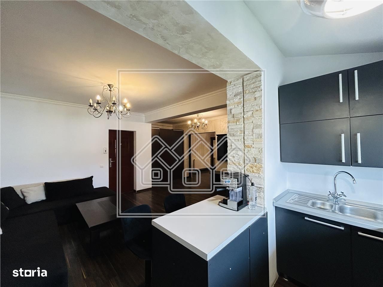 Ofer spre vanzare un apartament modern, intabulat, situat in zona Turnișor, una dintre cele mai liniștite și căutate zone din Sibiu. Apartamentul are o suprafață utilă de 58 mp, la care se adaugă un balcon inchis de 6 mp, transformat inteligent intr-o bucătărie complet funcțională. Compartimentare: Living open space cu zonă de dining Bucătărie amenajată pe balconul inchis Două dormitoare spațioase Baie modernă Apartamentul se vinde mobilat și utilat complet, exact ca in poze - gata de mutare! Avantaje: Apartament intabulat, disponibil imediat Balcon inchis transformat in bucătărie Mobilat și utilat complet Zonă liniștită, cu acces facil către centru și Aeroportul Sibiu Ideal pentru locuit sau investiție (inchiriere rapidă) ID:22865