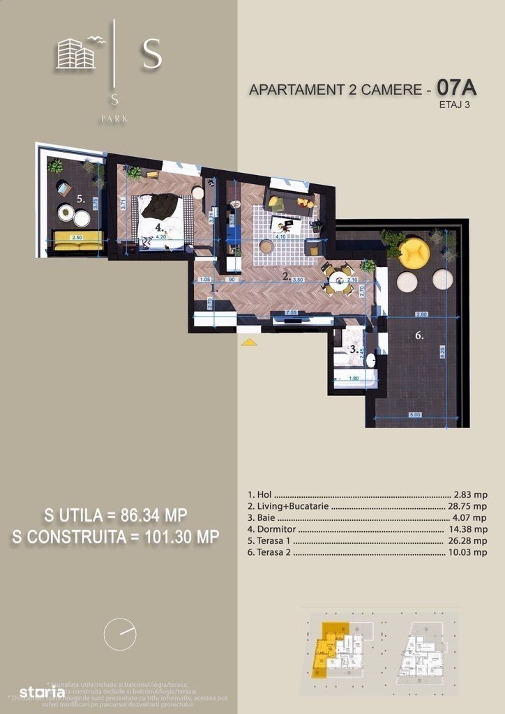 Noi va putem ajuta fara niciun cost, comisionul nostru este de 0% ! Asistenta gratuita in vederea intocmirii dosarului Blocul se afla in constructie Imagini cu titlu de prezentare Preturile acestui apartament sunt urmatoarele: -Pentru un avans de 90% la semnarea antecontractului pretul este de 90.909 Euro + TVA ! -Pentru un avans de 20% la semnarea antecontracului pretul este de 103.306 Euro + TVA ! Separat se poate achiziona si loc de parcare, pretul pentru locurile de parcare sunt urmaotarele: -Parcarea interioara este 12.000 Euro + TVA ! -Parcarea exterioara este 8.000 Euro + TVA ! Pozitionare: zona Pallady Tip proprietate - Apartament 2 camere Tip imobil - P+4 Suprafata utila - 50.03 mp utili + 36.31 mp terasa Utilitati publice - curent, apa, canalizare, gaz Distanta mijloace de transport in comun: -STB 253 si 330 Apartamentul vine cu urmatoarele dotari: -centrala proprie -incalzire in pardoseala -vas toaleta sistem gheberit -finisaje la alegere Grăbește-te! Apartamentele din acest proiect se rezervă rapid - ia legătura cu noi pentru detalii! Ai întrebări? Îți oferim toate informațiile de care ai nevoie pentru a face alegerea corectă! Bogdan Armeanca -