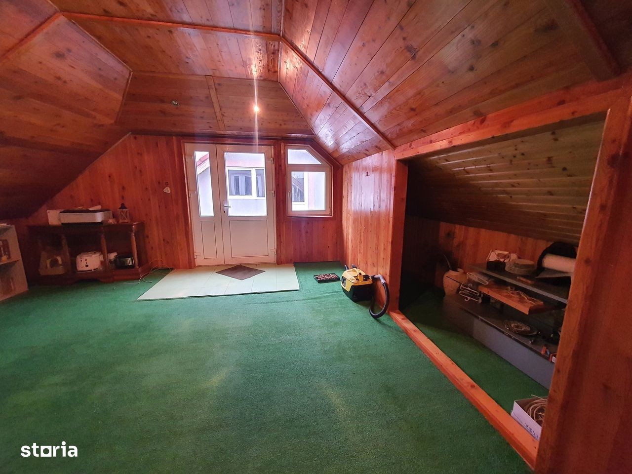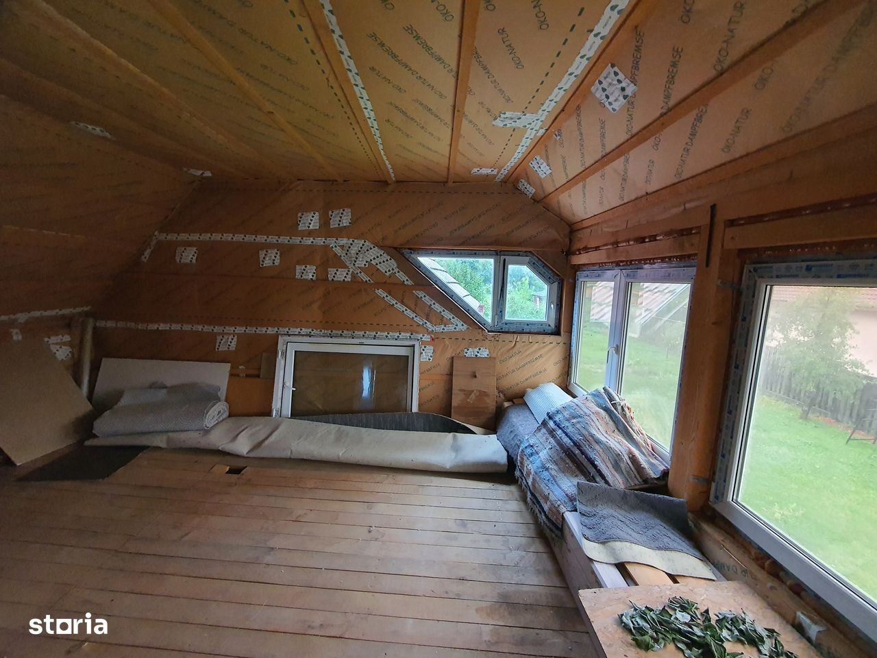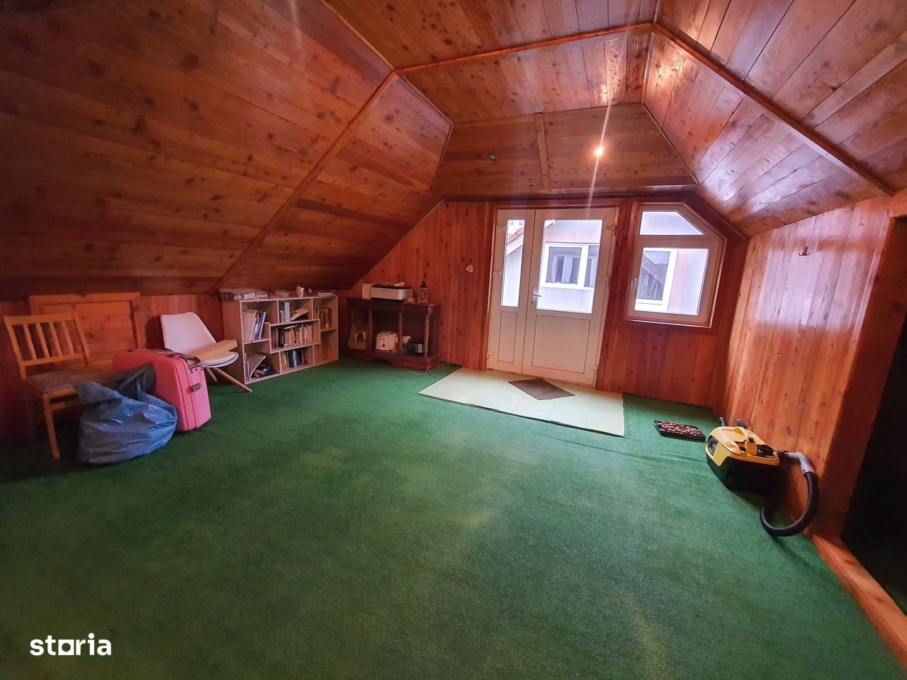 Casă cu teren generos de 1200 mp - zonă liniștită, aproape de Brașov Proprietatea este amplasată pe un teren generos de 1200 mp, ideal pentru relaxare, grădinărit sau amenajarea unui spațiu de joacă. Casa are o suprafață construită de 130 mp la parter (cărămidă și piatră) și 90 mp la mansardă (lemn), compartimentată practic, astfel: