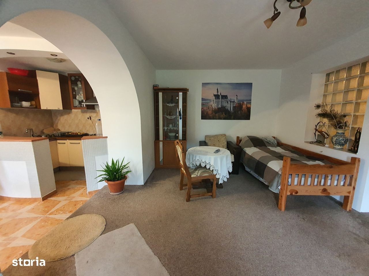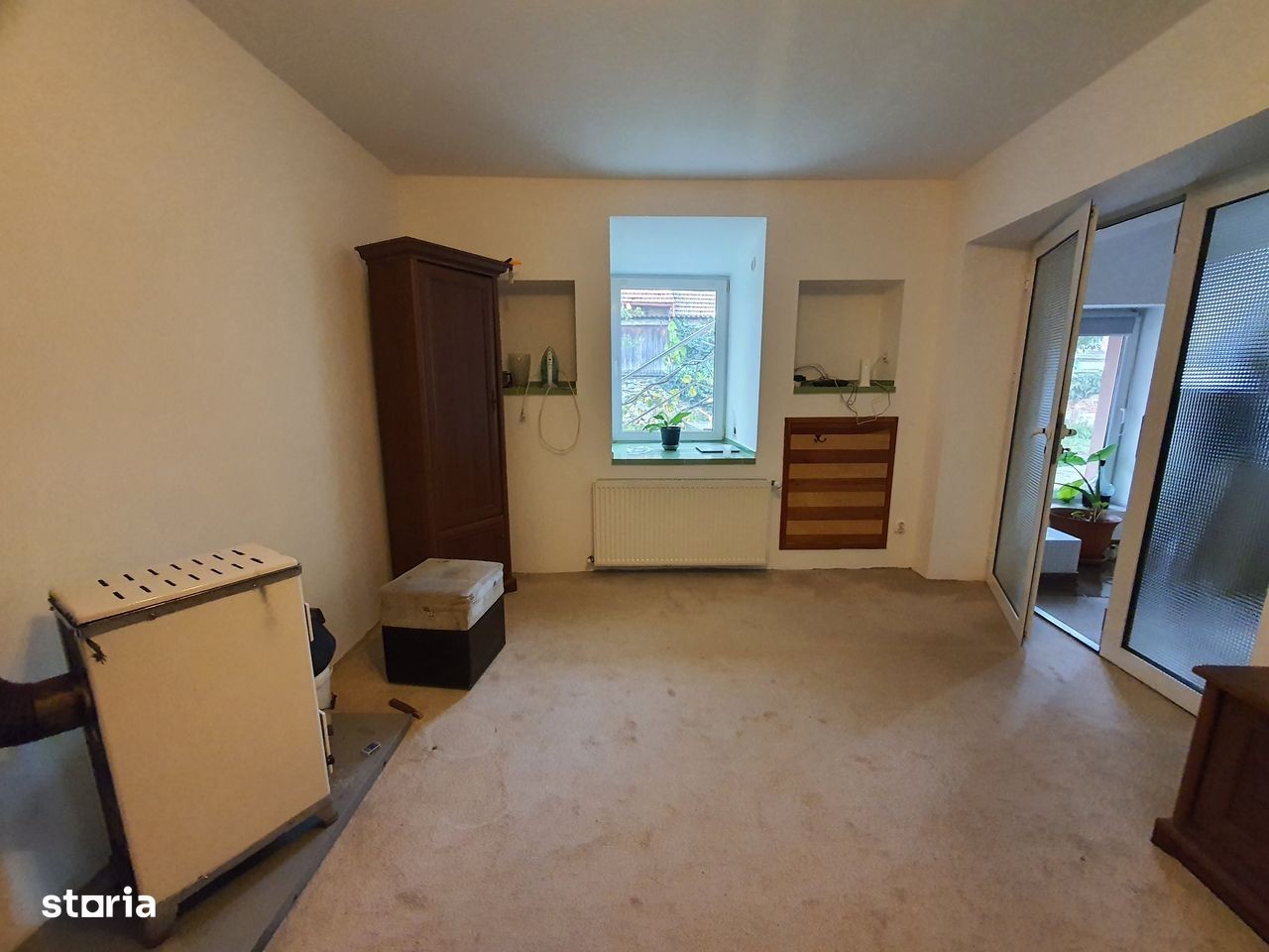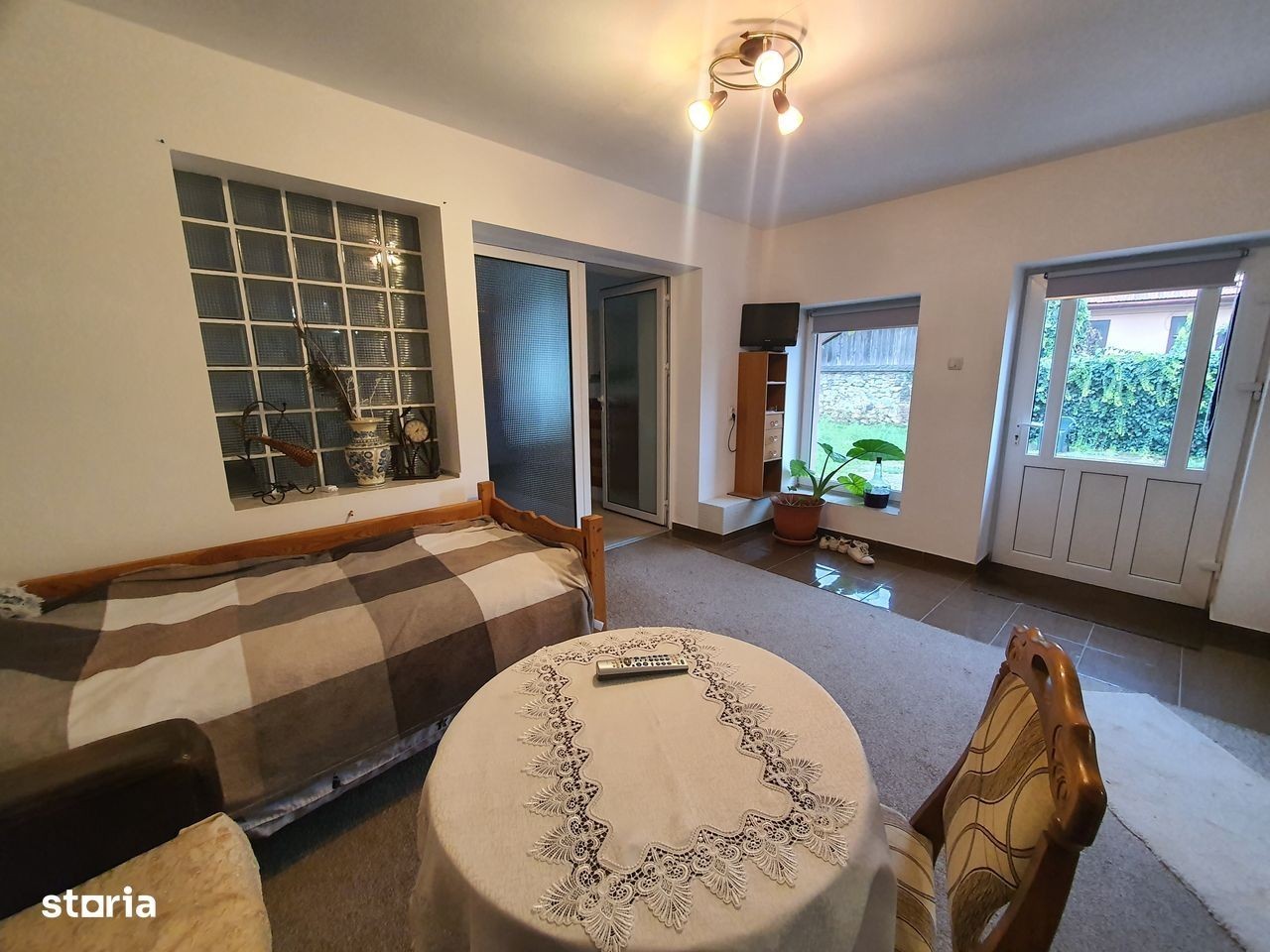 Casă cu teren generos de 1200 mp - zonă liniștită, aproape de Brașov Proprietatea este amplasată pe un teren generos de 1200 mp, ideal pentru relaxare, grădinărit sau amenajarea unui spațiu de joacă. Casa are o suprafață construită de 130 mp la parter (cărămidă și piatră) și 90 mp la mansardă (lemn), compartimentată practic, astfel: