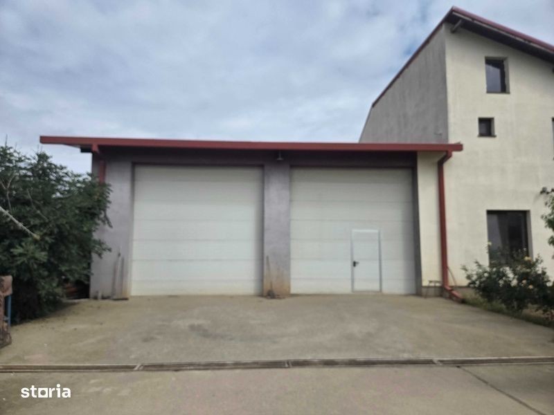 Casa in zona Matei Millo Voluntari, construita in 2015, cu hala si zona de locuit Suprafata teren de 580mp, deschidere la strada 20m, suprafata construita la sol 223.62mp Hala are o suprafata de 100mp, cu vestiar si grup sanitar, 2 porti industriale cu 1 usa pietonala. Casa este P+1, la parter are bucatarie, baie, living, camera, 2 terase. Etajul are o suprafata utila de 57.91mp, compus din dormitor cu baie proprie si dressing si un alt dormitor cu baie proprie, balcon. Proprietatea are gard de beton, accesul se face prin poarta automata, necesita renovare in special la exterior, curtea nu este amenajata.