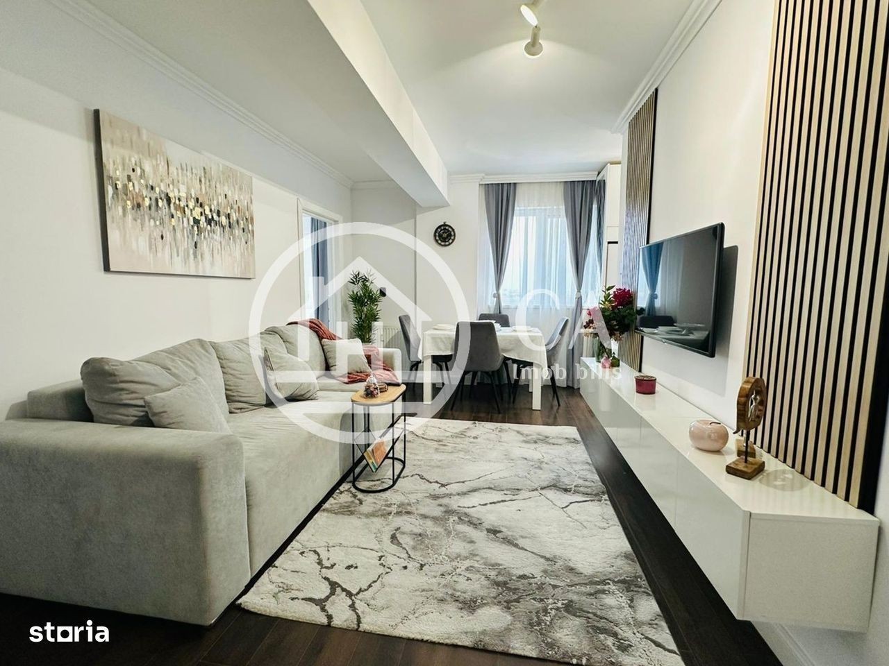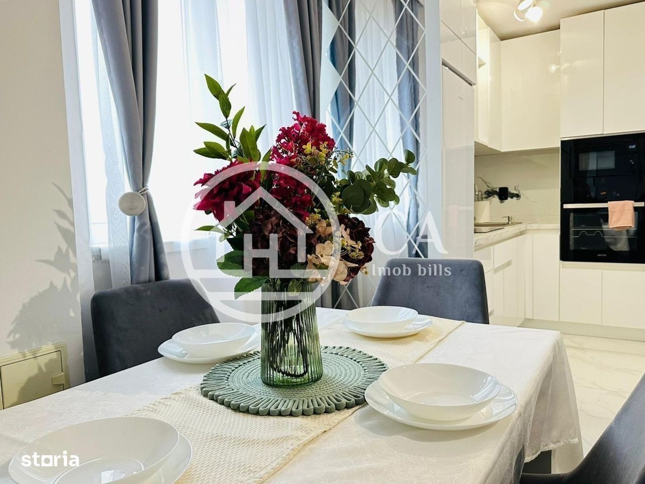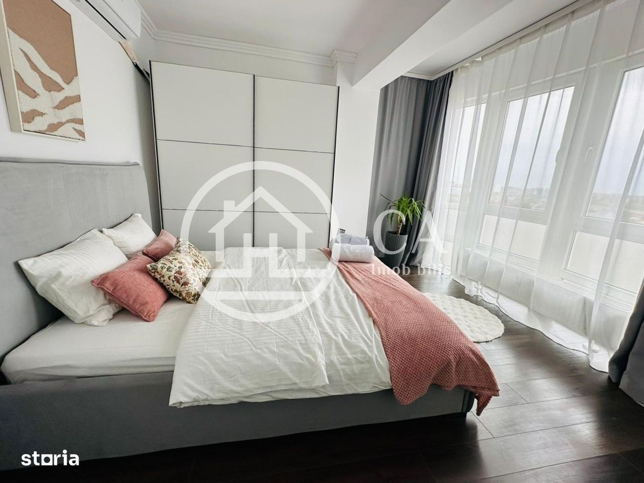 Agentia imobiliara CA Imob bills va ofera spre inchiriere un apartament cu 3 camere situat in cartierul rezidential Prima Nufarul, Oradea Imobilul este contruit in 2010, beneficiaza de acces dublu si este prevazut cu ascensor. Locuinta este decomandata, fiind amplasata la la etajul 8/9 si masoara o suprafata utila de 53 mp. Apartamentul este compus din: hol de acces, living open space cu bucataria, 2 dormitor si o baie cu dus, 1 balcon deschis. Se inchiriaza mobilat si utilat cu: masina de spalat rufe, hota, plita electrica, cuptor electric, AC, Tv, combina frigorifica. Este dotat cu: geamuri termopan, usi de interior din MDF, usa de inalta siguranta la intrare, interfon, parchet laminat, gresie si faianta. Imobilul detine loc de parcare propriu, inclus in prețul chiriei. In vecinatate se regasesc: spatii comerciale, Centura Oradea, statii ale mijloacelor de transport in comun, Metro, Lotus Mall, parcuri, scoli, gradinite. Pretul pentru acest apartament cu 3 camere din cartierul rezidențial Prima Nufarul este de 550 euro/luna. Pentru detalii suplimentare, informatii si vizionari, ne puteti contacta la: e-mail: website: The real estate agency CA Imob bills offers you for rent a 3-room apartment located in the residential neighborhood of Prima Nufarul, Oradea The building was built in 2010, benefits from double access and is equipped with an elevator. The home is detached, being located on the 8th/9th floor and measures a usable area of 53 sq m. The apartment consists of: entrance hall, open space living room with kitchen, 2 bedrooms and a bathroom with shower, 1 open balcony. It is rented furnished and equipped with: washing machine, hood, electric hob, electric oven, AC, TV, refrigerator. It is equipped with: double glazing, MDF interior doors, high security door at the entrance, intercom, laminate flooring, ceramic and tile flooring. The building has its own parking space, included in the rent price. Nearby you will find: commercial spaces, Oradea Ring Road, public transport stations, Metro, Lotus Mall, parks, schools, kindergartens. The price for this 3-room apartment in the Prima Nufarul residential neighborhood is 550 euros/month. For additional details, information and viewings, you can contact us at: e-mail: website: