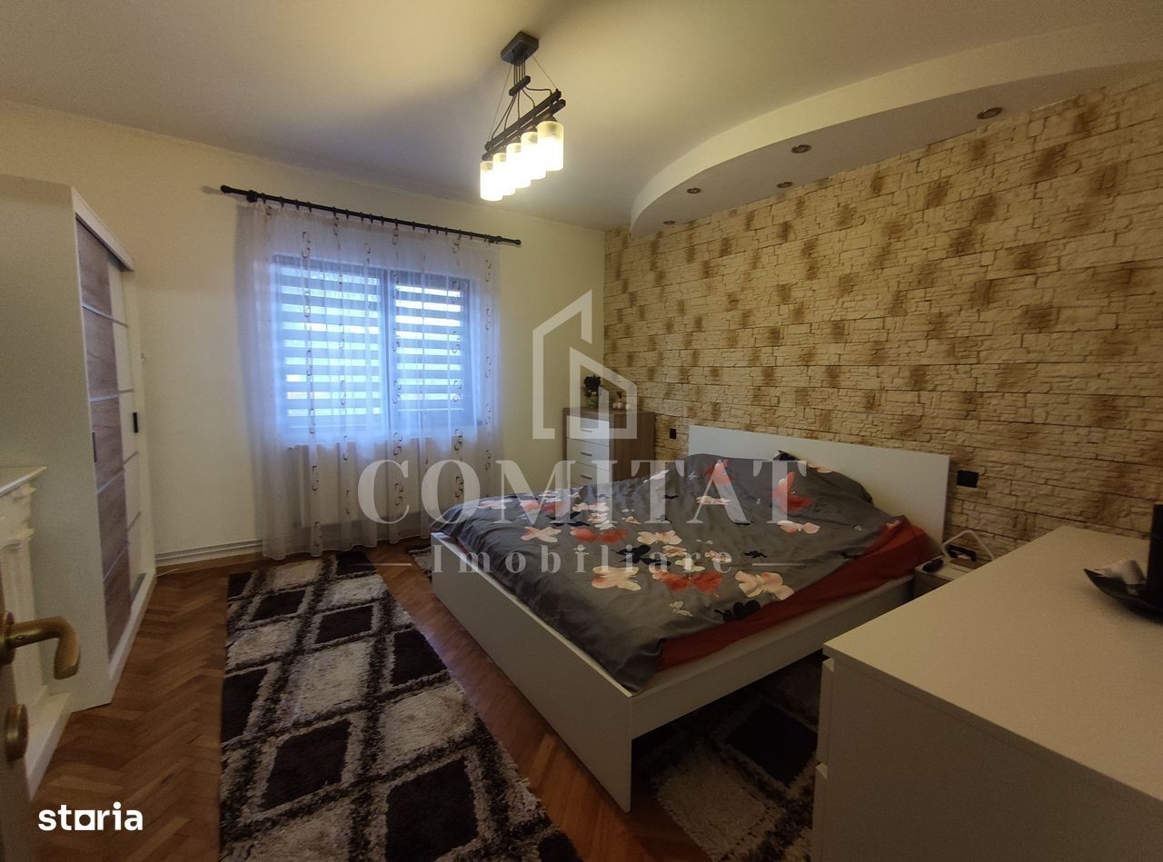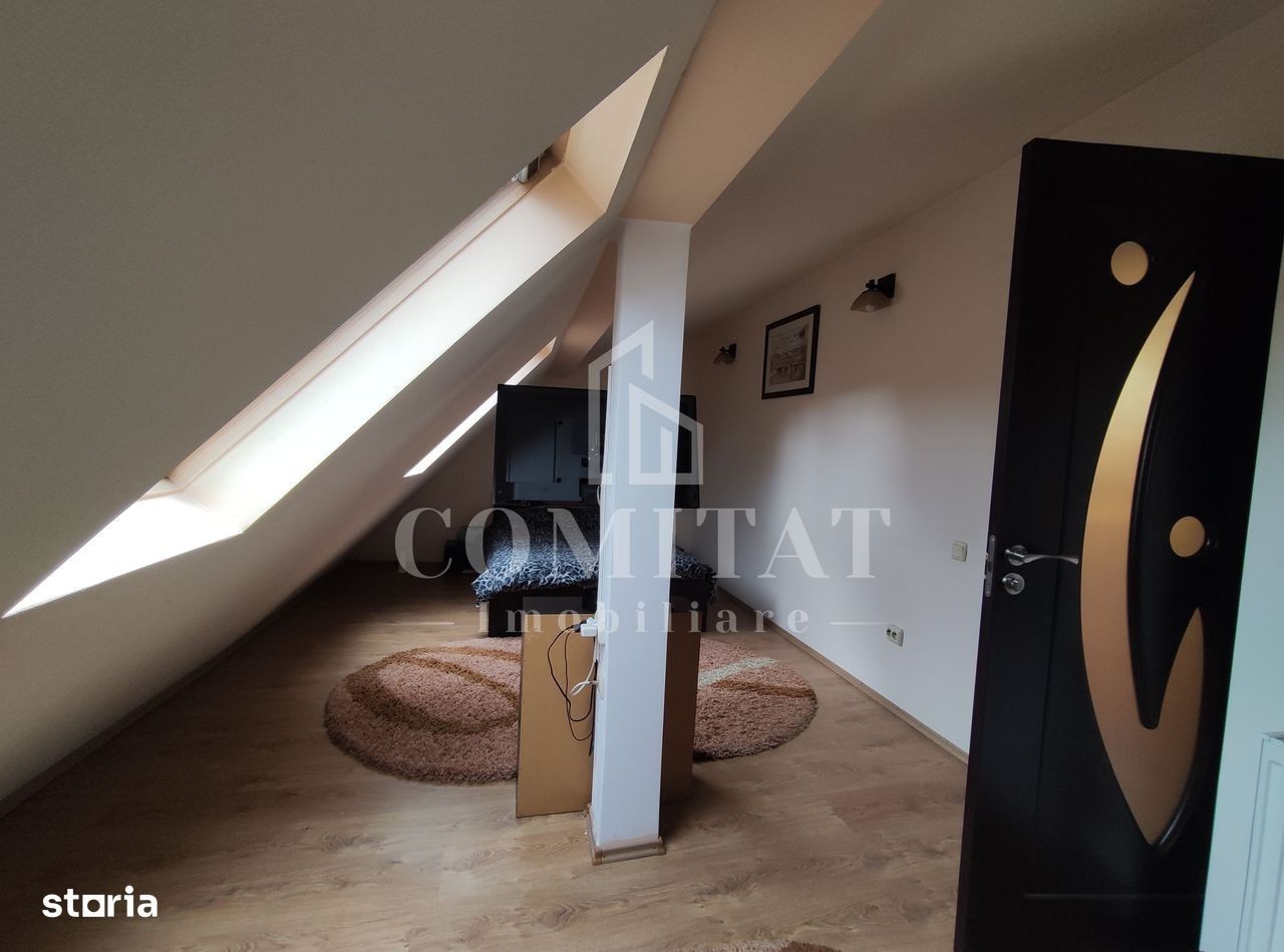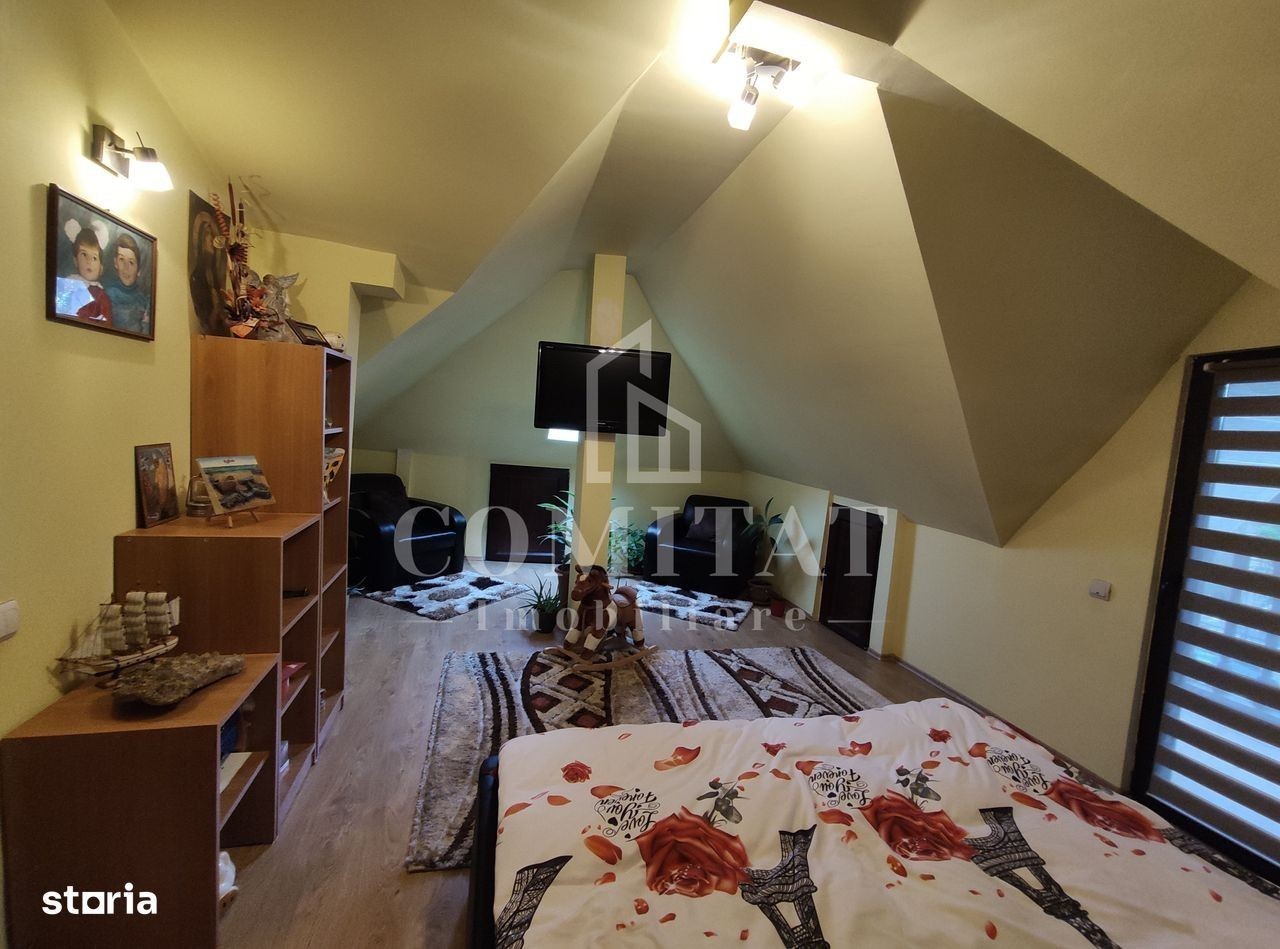 Avem deosebita plăcere de a vă oferi spre vânzare o casă individuala la calcan, finisata modern, în cartierul Gruia. Având o suprafață utilă de aproximativ 108 mp, dispusă pe 2 niveluri (parter + mansardă), și este compartimentată astfel: Parter: 1 antreu, 1 living generos, 2 dormitoare, 1 bucătărie, 1 baie, 1 terasă. Mansardă: 2 dormitoare, 1 hol, 1 baie, 1 dressing, 1 balcon. Locuința este ocupabilă imediat, predându-se semi-mobilat. Amplasarea acesteia este extrem de facilă, situându-se într-o zonă liniștită și izolată de cotidian. Imobilul degajă un aer primitor, familiar, iar curtea de aproximativ 300 din jurul acestuia îi oferă un adaos de farmec. Prin urmare, locuința se pretează ideal pentru iubitorii de natură, asigurând un colț idilic prin iazul cu pești și piscina exterioară. De asemenea, curtea asigură și o terasă generoasă, potrivită pentru niște clipe de deconectare. Locuința are certificatul de performanță în curs de finalizare, iar acesta se va preda noilor locatari în momentul semnării cotractului de vânzare-cumpărare. Pentru informații suplimentare despre proprietate și vizionări, vă stăm cu drag la dispoziție! Informațiile din anunț au fost furnizate în prealabil de către proprietar. Agenția nu își asumă responsabilitatea pentru eventuale modificări în ceea ce privește prețul sau informațiile prezentate.