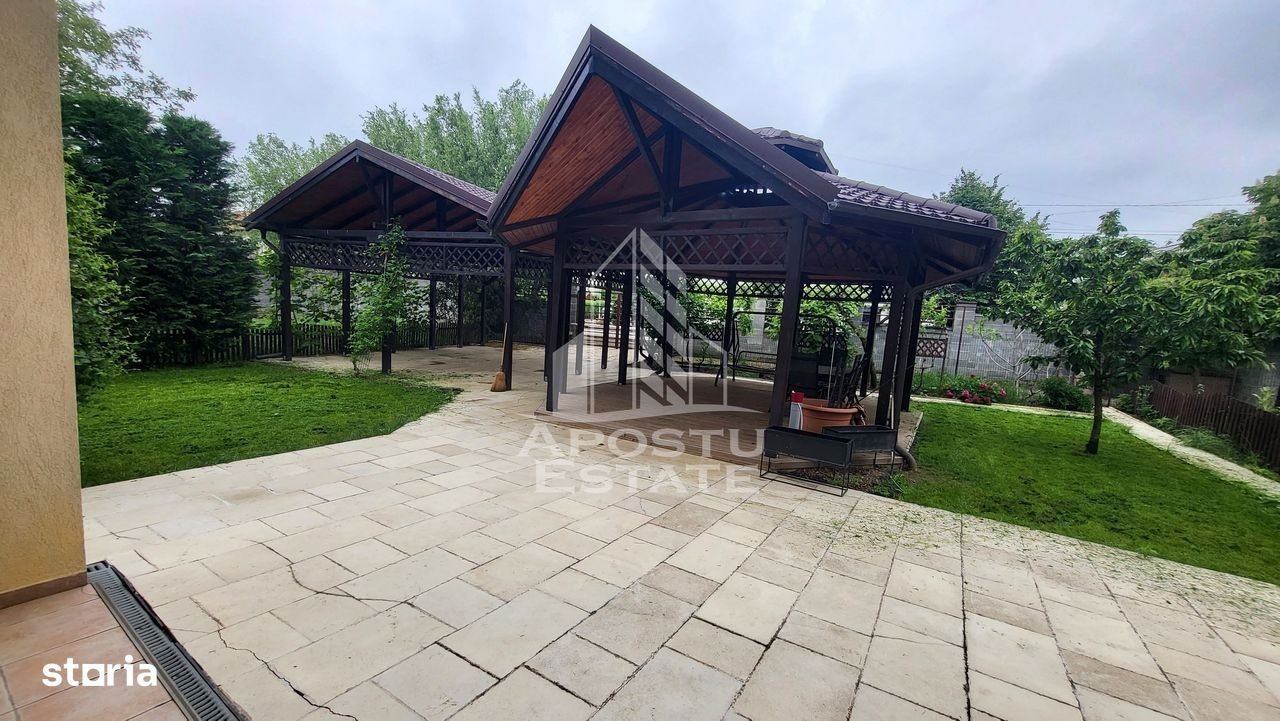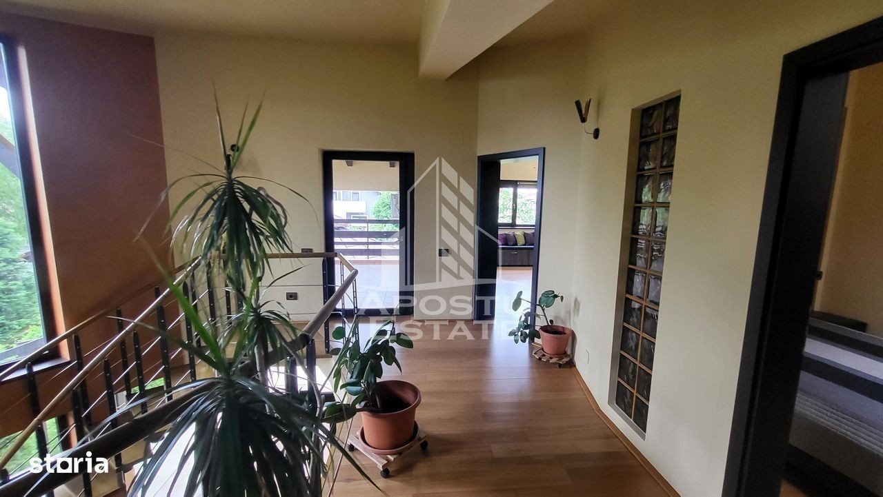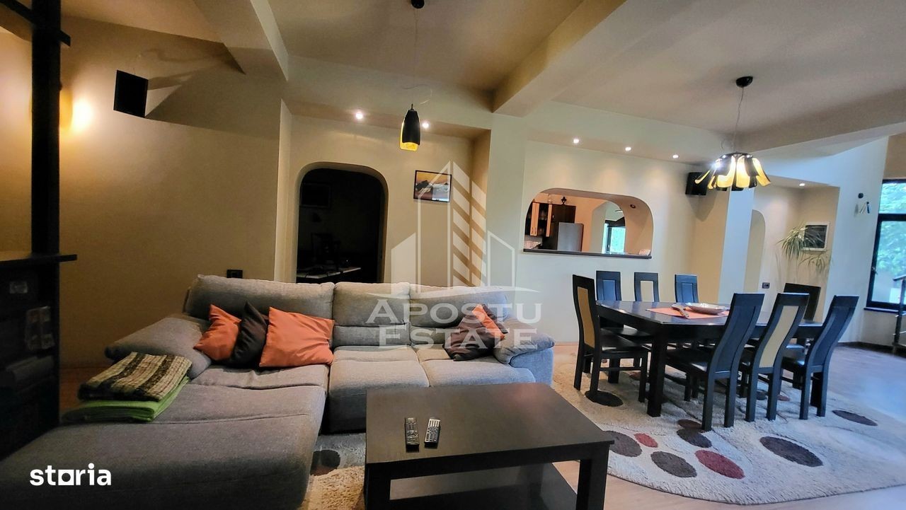 Apostu Estate va propune spre vanzare o proprietate deosebita,in Dumbravita,zona Centrala. Casa individuala pe structura S+P+M,cu o suprafata utila de 411 mp si un teren generos de 1431 mp. Pozitie ideala,intr-o zona de case, la doar 350 m fata de Primarie si Parc,aceasta proprietate impunatoare,este compartimentata astfel: Parter: -hol acces -living generos cu dinning -bucatarie -birou -baie -terasa -sera incalzita -baie pe terasa -un apartament cu 2 camere si baie proprie Demisol -camera amenajata ca si pivnita -camera tehnica Mansarda -3 dormitoare -2 bai -camera de lobby Confortul termic se realizeaza prin intermediul centralei pe gaz,a celor 2 pompe de caldura cu panouri,instalatiilor de climatizare si al semineului. Detalii tehnice: -Constructie riguroasa si solida din stalpi si grinzi din beton armat,caramida. -tamplarie interioara lemn tip Mdf, -tamplarie exterioara Pvc cu geam termopan. -pardoseli din parchet laminat si gresie. Curte este amenajata cu pavaje,spatiu verde,pomi ornamentali si gradina cu solar. Se poate vinde la pretul de 549000€ cu 1431 mp teren,sau varianta de 475000€ cu 800 mp teren. O proprietate ideala atat pentru locuit cat si pentru investitie,fiind pretabila pentru diverse activitati! Va oferim consultanta si solutii financiare prin colaboratorii nostrii! Va asteptam cu drag la o vizionare!