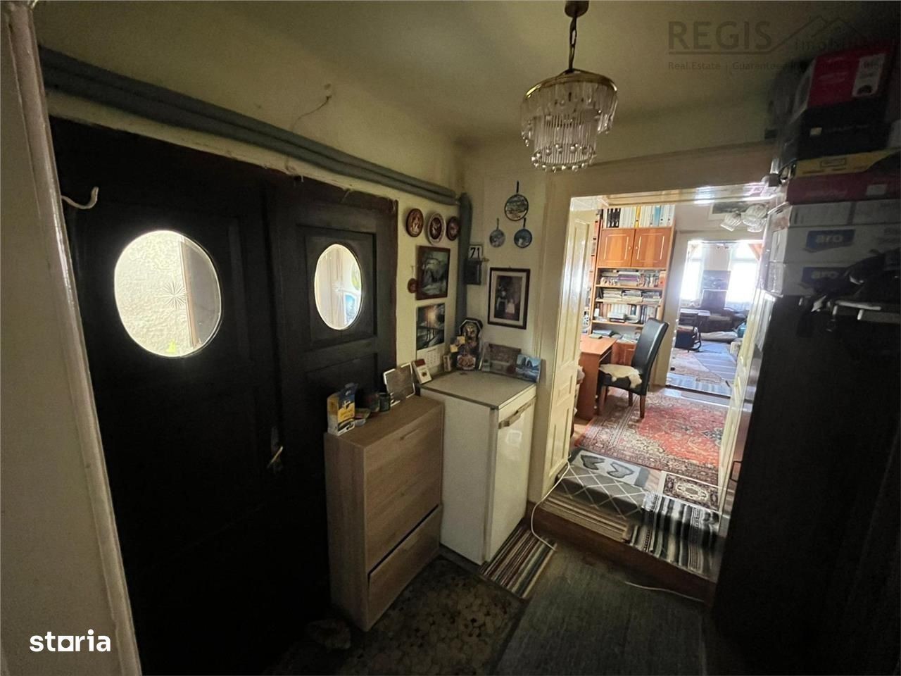 ID INTERN -6174 REGIS Imobiliare va propune spre vanzare o casa cu 4 camere in GHIMBAV, intr-o zona foarte buna. Aceasta se afla intr-un imobil singur in curte, intabulat. Suprafata terenului este de 1088 mp, iar suprafata utila a constructiei este de aproximativ 120 mp. Compartimentarea acestuia este in felul urmator: - Camera 1 - Camera 2 - Camera 3 - Camera 4 - Bucatarie - Baie - Camara, permite accesul in pod. - Beci Accesul in casa se poate face prin 2 intrari. Aceasta este racordata, la utilitati apa, canal, gaz. Are centrala termica pe gaz cu calorifere dar si sobe de teracota pe gaz. Gradina se prelungeste pana la Str. Bisericii Romane, si se poate face un al 2 lea acces. Comisionul agentiei este de 2 % + TVA. Pentru detalii suplimentare, contactati-ne telefonic! Consultant imobiliar Daniel
