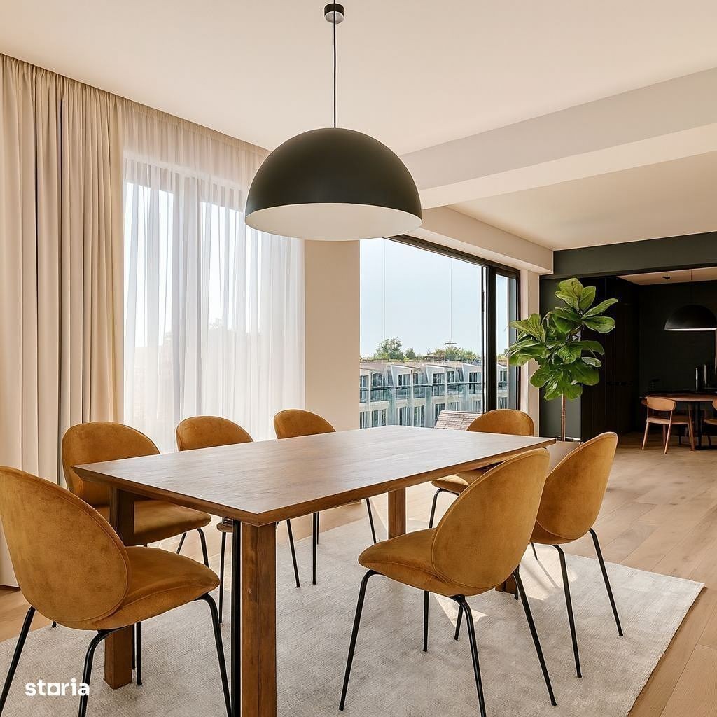 Penthouse spectaculos cu 4 camere și rooftop de 100 mp | Iancu Nicolae | De închiriat Descoperă un penthouse impresionant, situat într-una dintre cele mai exclusiviste zone din nordul Capitalei - Iancu Nicolae. Cu o suprafață generoasă, compartimentare eficientă și o terasă panoramică de 100 mp, acest apartament redefinește stilul de viață urban, modern și rafinat. Localizare: Iancu Nicolae, în proximitatea British School, Jolie Ville, restaurante premium și zone verzi Suprafață: 4 camere + rooftop 100 mp Parcare: inclusă în subteran Caracteristici principale: • Living spațios cu zonă de dining și lumină naturală abundentă • Bucătărie modernă, complet mobilată și echipată • 3 dormitoare confortabile • Terasă rooftop de 100 mp - ideală pentru relaxare, socializare sau seri speciale sub cerul liber • Finisaje premium Disponibil imediat | Se închiriază complet mobilat și utilat