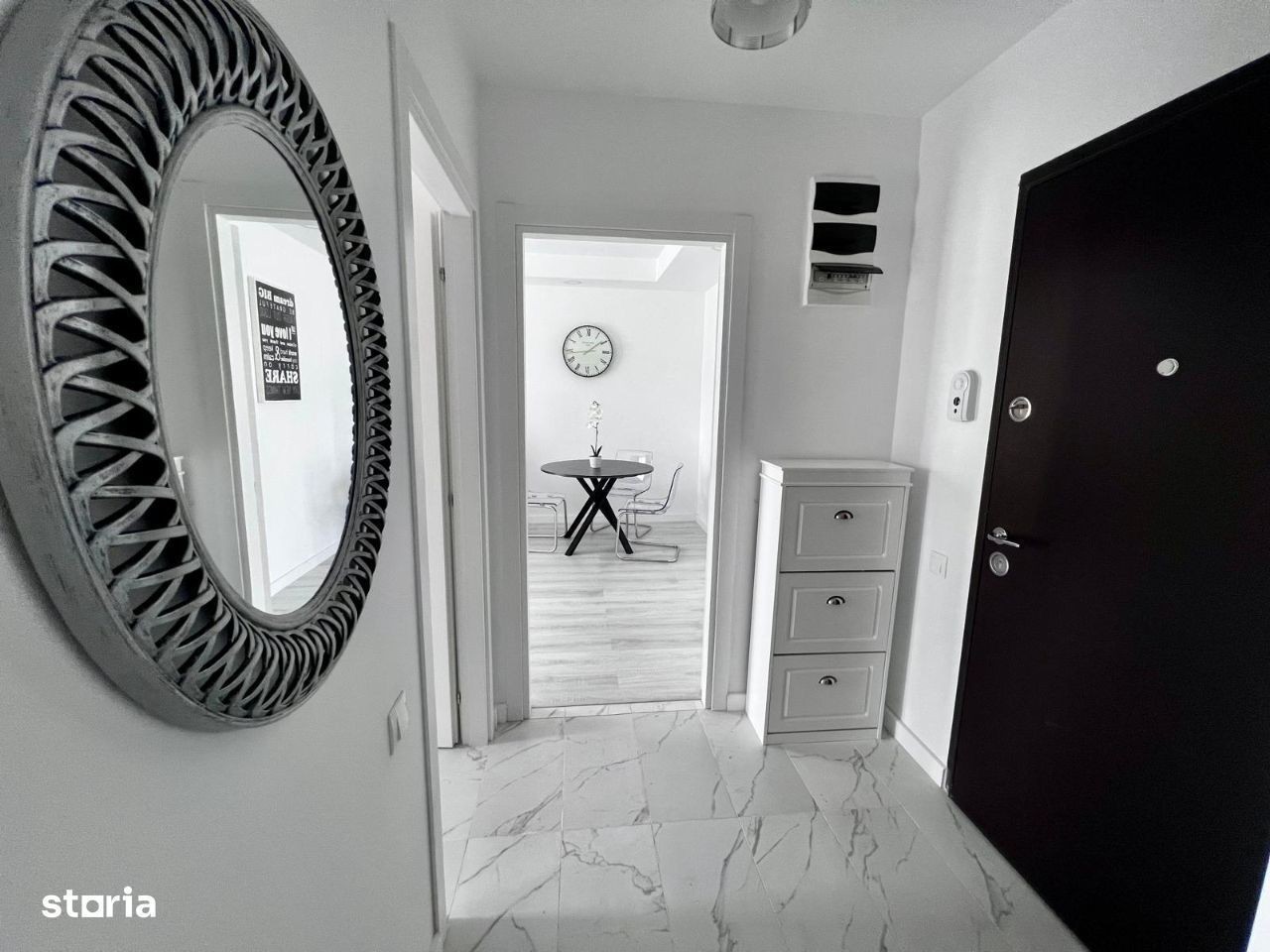 Va oferim spre închiriere un apartament cu doua camere, cu suprafata utila de 50 mp, la etajul 4, situat in Ansamblul Rezidential Cosmopolis. Apartamentul dispune de living, bucatarie complet mobilata si utilata, 1 dormitor, 1 baie, hol si balcon si 1 loc de parcare. Imobilul se inchiriaza complet mobilat si utilat pe o perioada minima de 12 luni. Ansamblul Rezidential Cosmopolis va ofera urmatoarele facilitati: Lidl, Strip Mall (singurul mall dintr-un Ansamblu Rezidential din Romania, unde gasiti Carrefour, Jysk, Pepco, Sinsay, Tedi, farmacie, cabinet veterinar, brutarie, restaurant, croitorie, curatatorie, pub, wine shop, cafenea, magazin non-stop, coafor, fast food, loc de joaca in interior pentru copii, magazin cu articole de gradinarit, magazin de papetarie si jucarii, inmedio), piscine exterioare, transport privat (Cosmopolis - Metrou Pipera- Retur), gradinite si scoala privata, in curand scoala de stat, parc, paza asigurata de BGS. Unitate promovata de echipa de vanzari a dezvoltatorului.